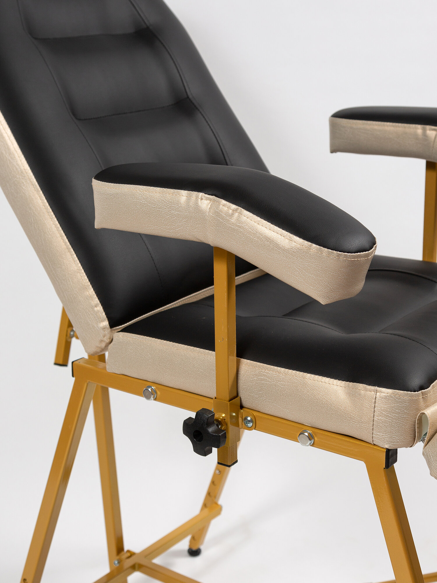 Педикюрное кресло Горизонт, кушетка косметологическая для салона красоты с регулировкой высоты, 180*56, Уютный мастер, золотистый металл, черный/золото