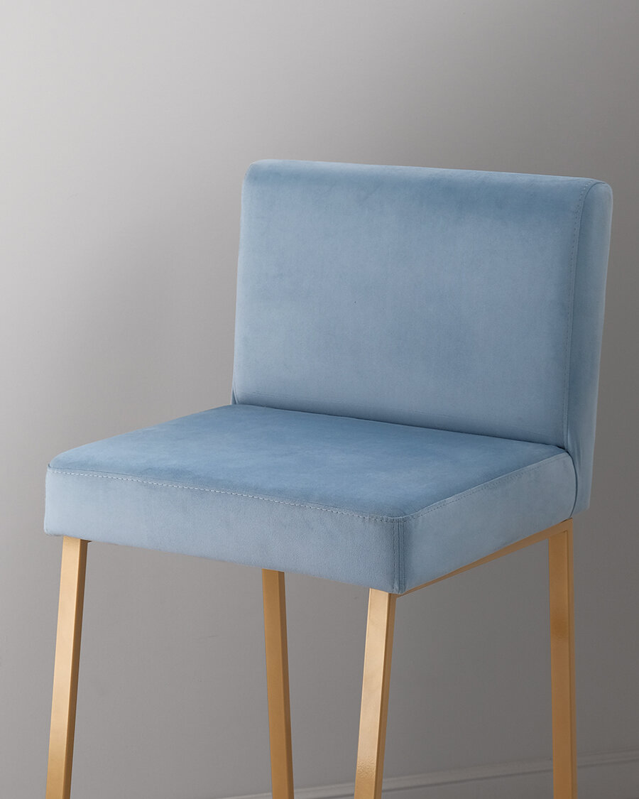 Барный стул визажиста голубой/золото Johny Wood