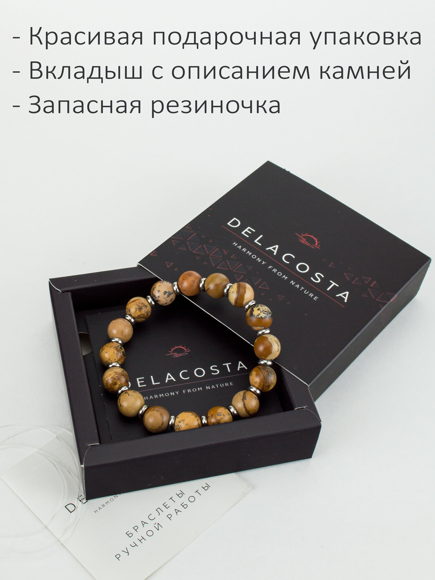 Ниже Вы можете прочитать отзывы на Браслет DELACOSTA, яшма, 1 шт., размер 21 см, песочный, ознакомится с подробными характеристиками, посмотреть интересные обзоры и фотографии на Браслет DELACOSTA, яшма, 1 шт., размер 21 см, песочный.