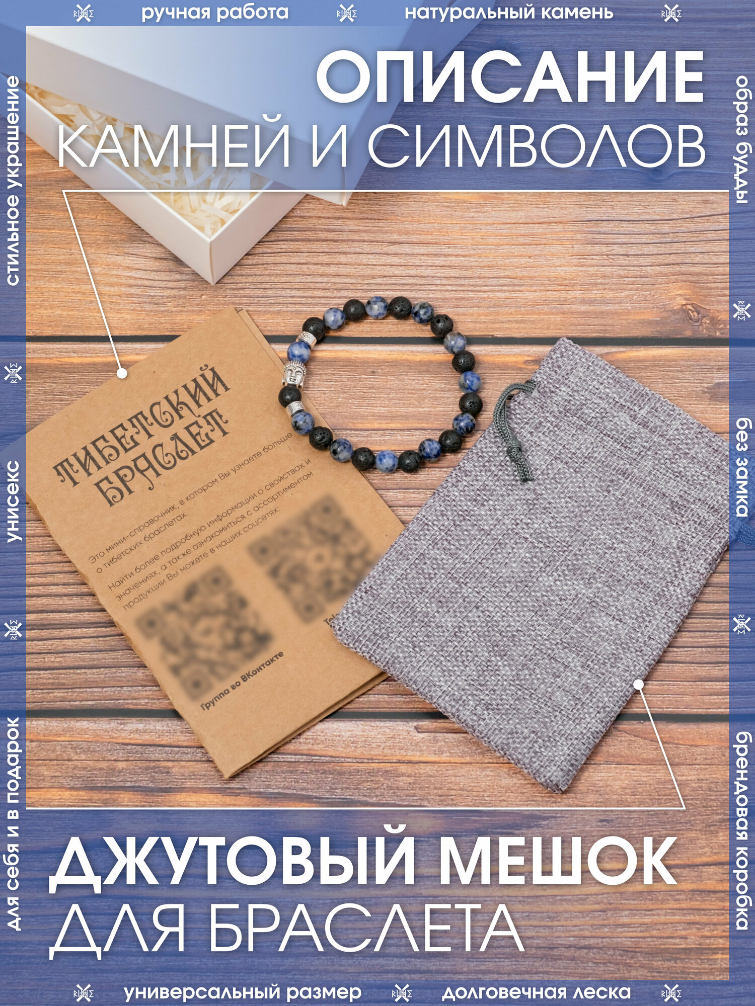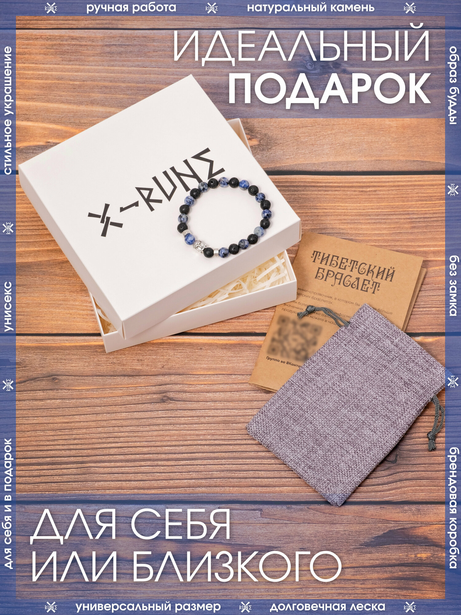 Браслет X-Rune, Тибетский браслет с образом Будды из натурального лазурита