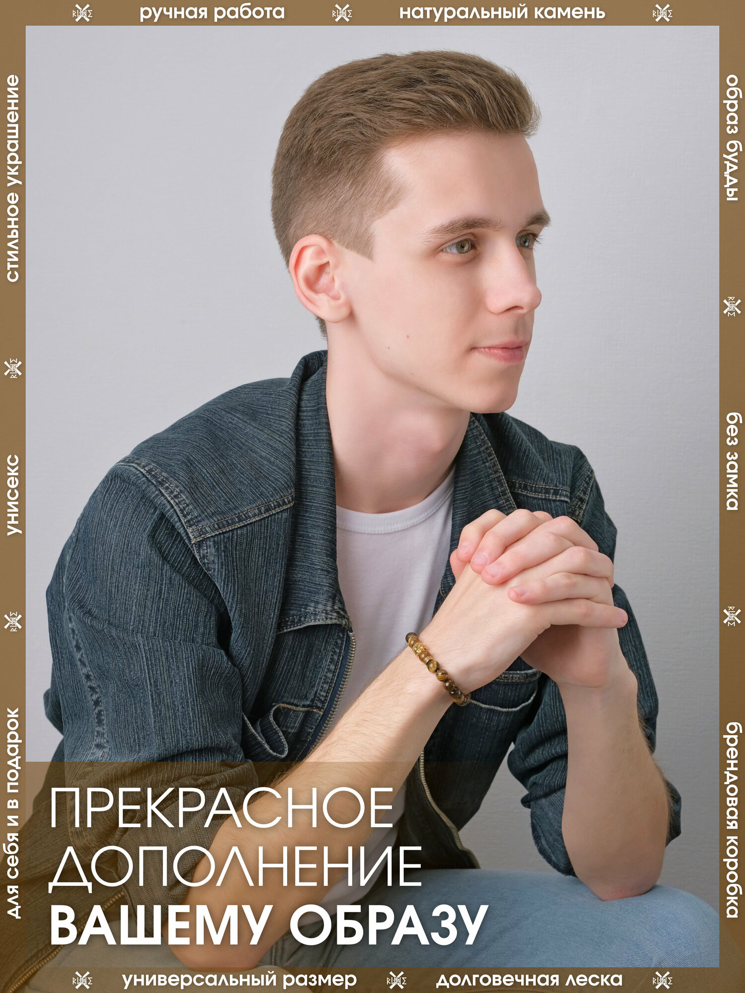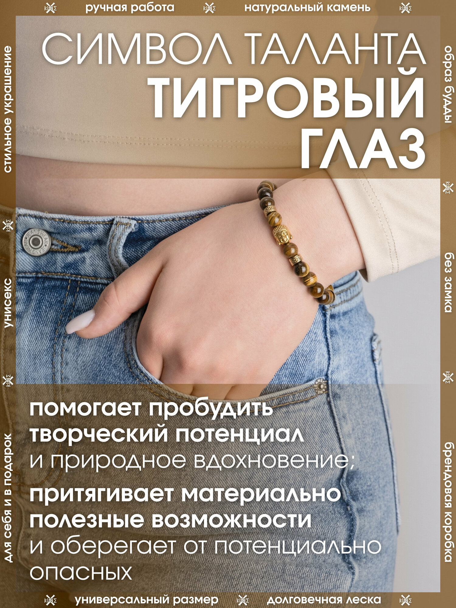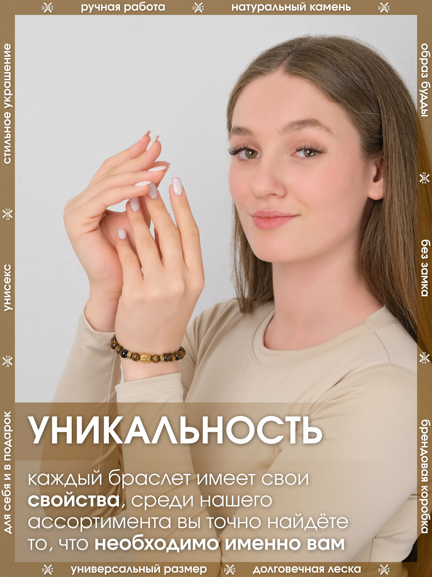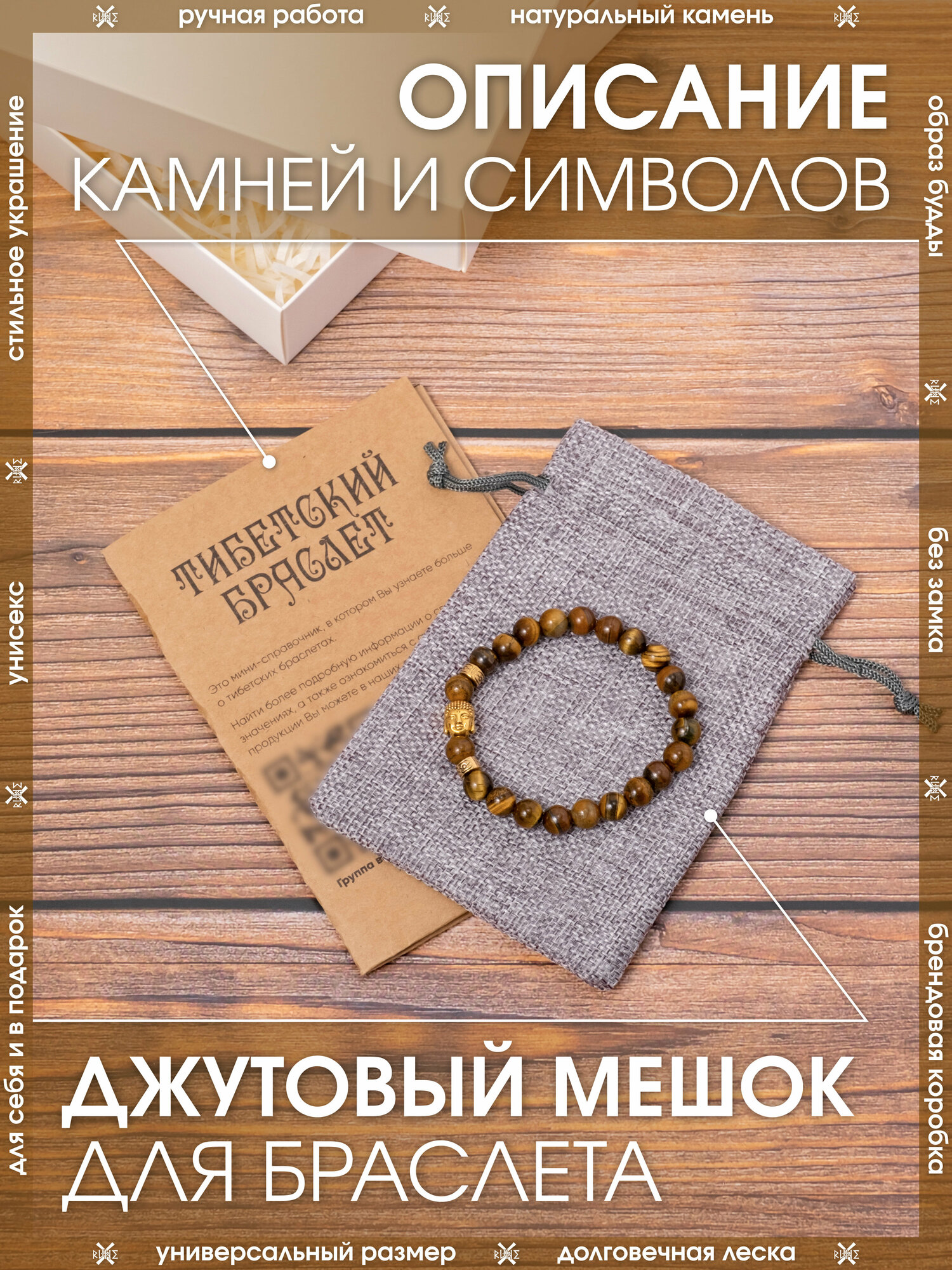 Защитный тибетский браслет Будда "Прилив сил" из натурального камня Тигровый Глаз/Охранный оберег-талисман на руку/Бижутерия для мужчин и женщин