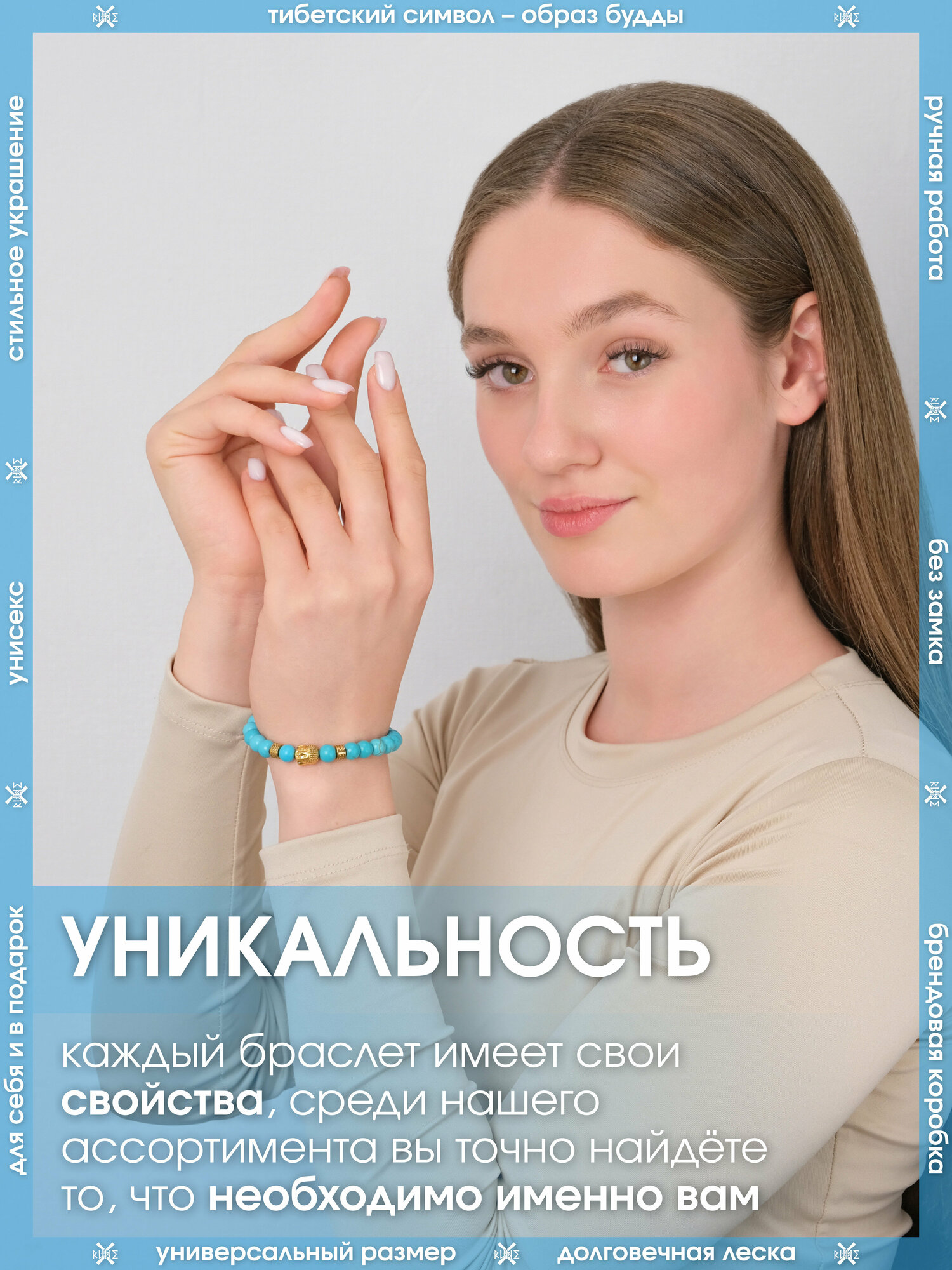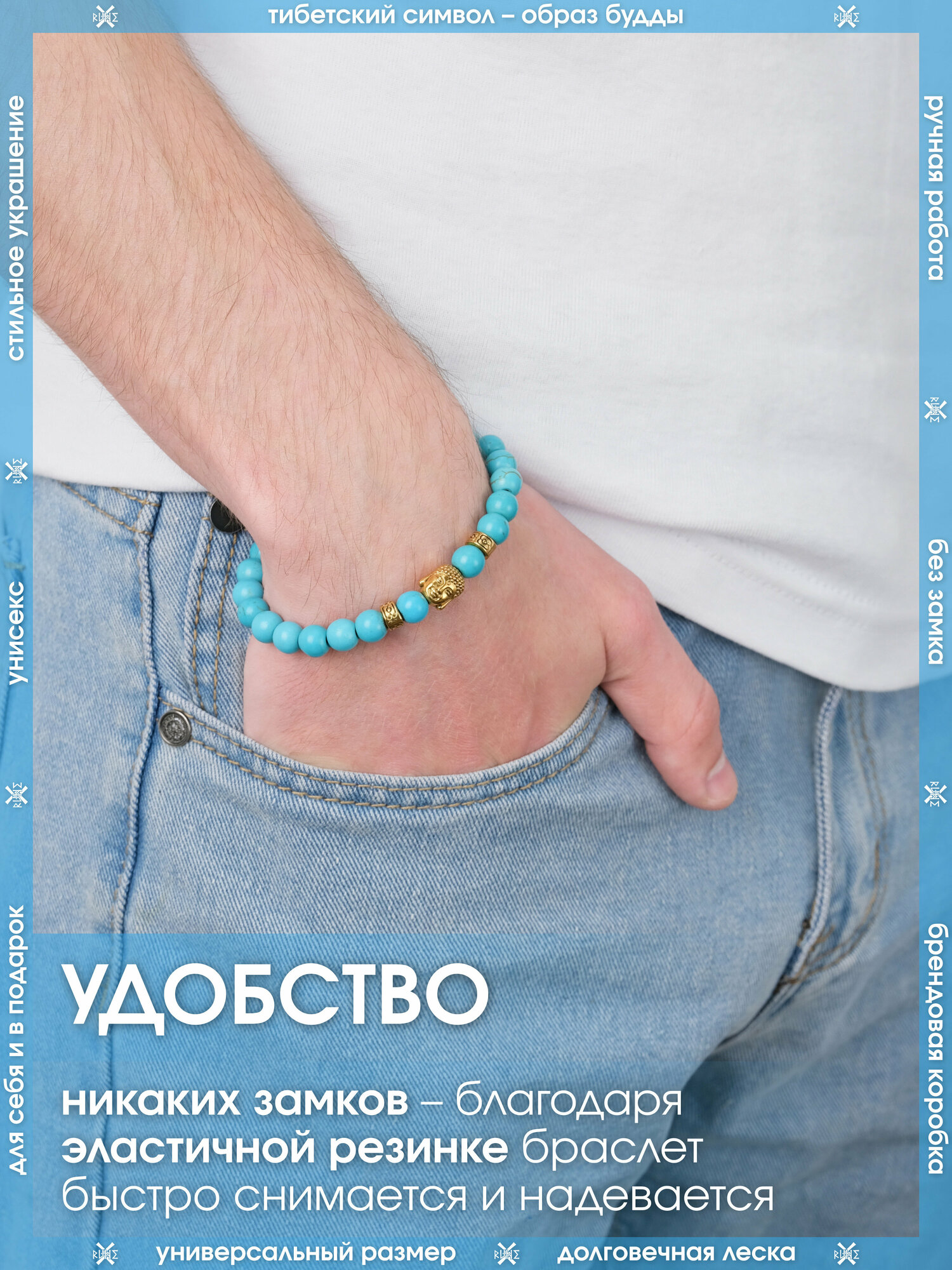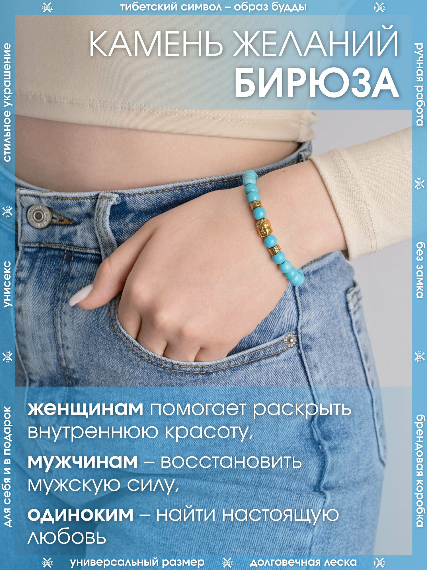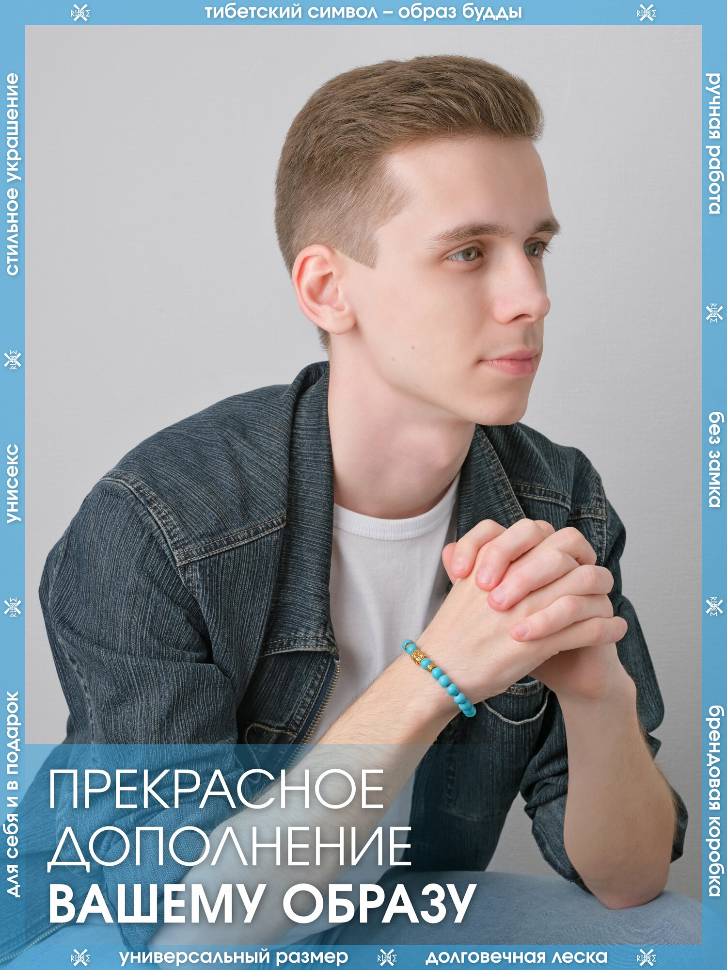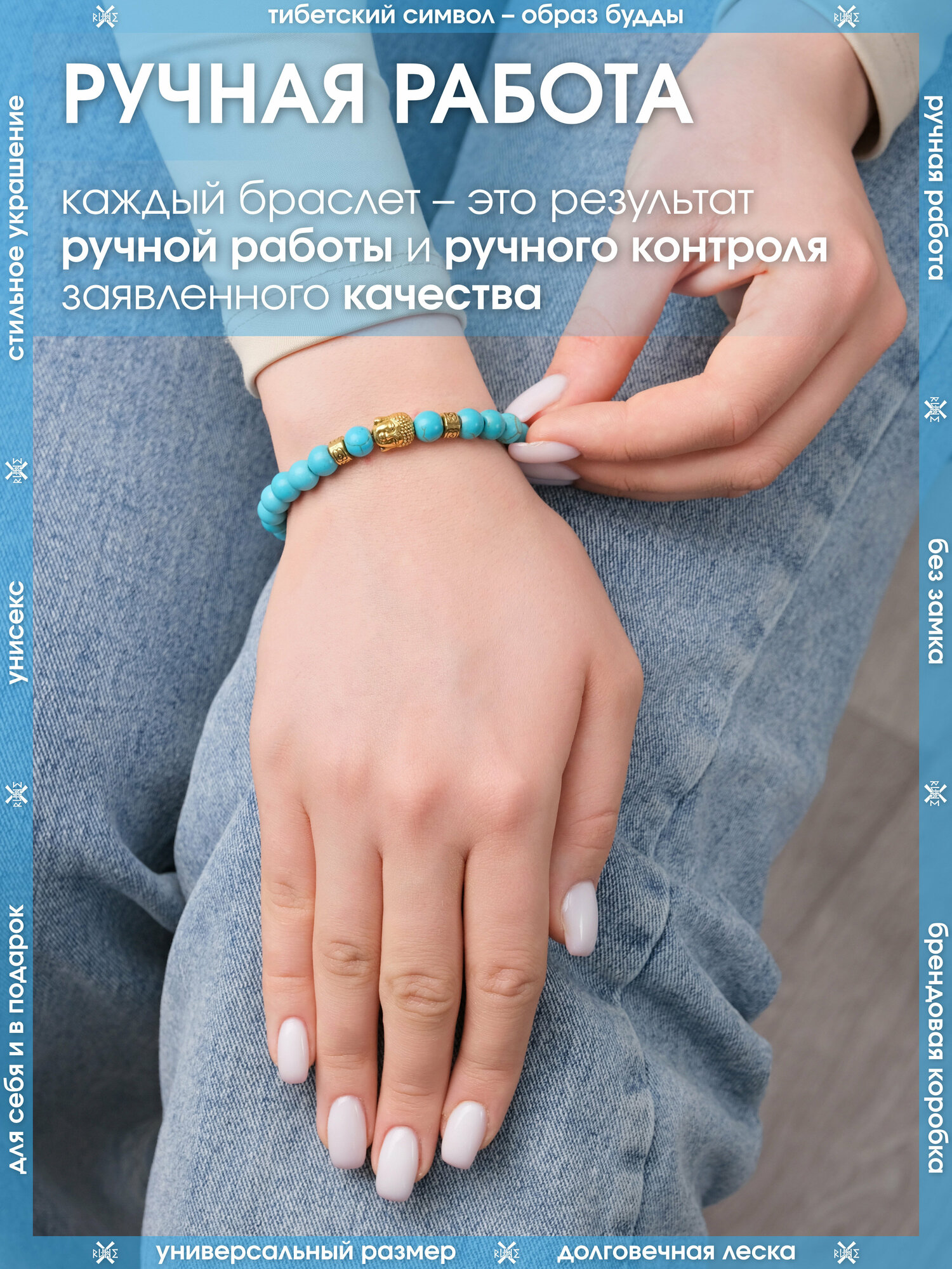 Защитный тибетский браслет Будда "Духовное равновесие" из камня Бирюза/Охранный оберег-талисман на руку/Бижутерия для мужчин и женщин