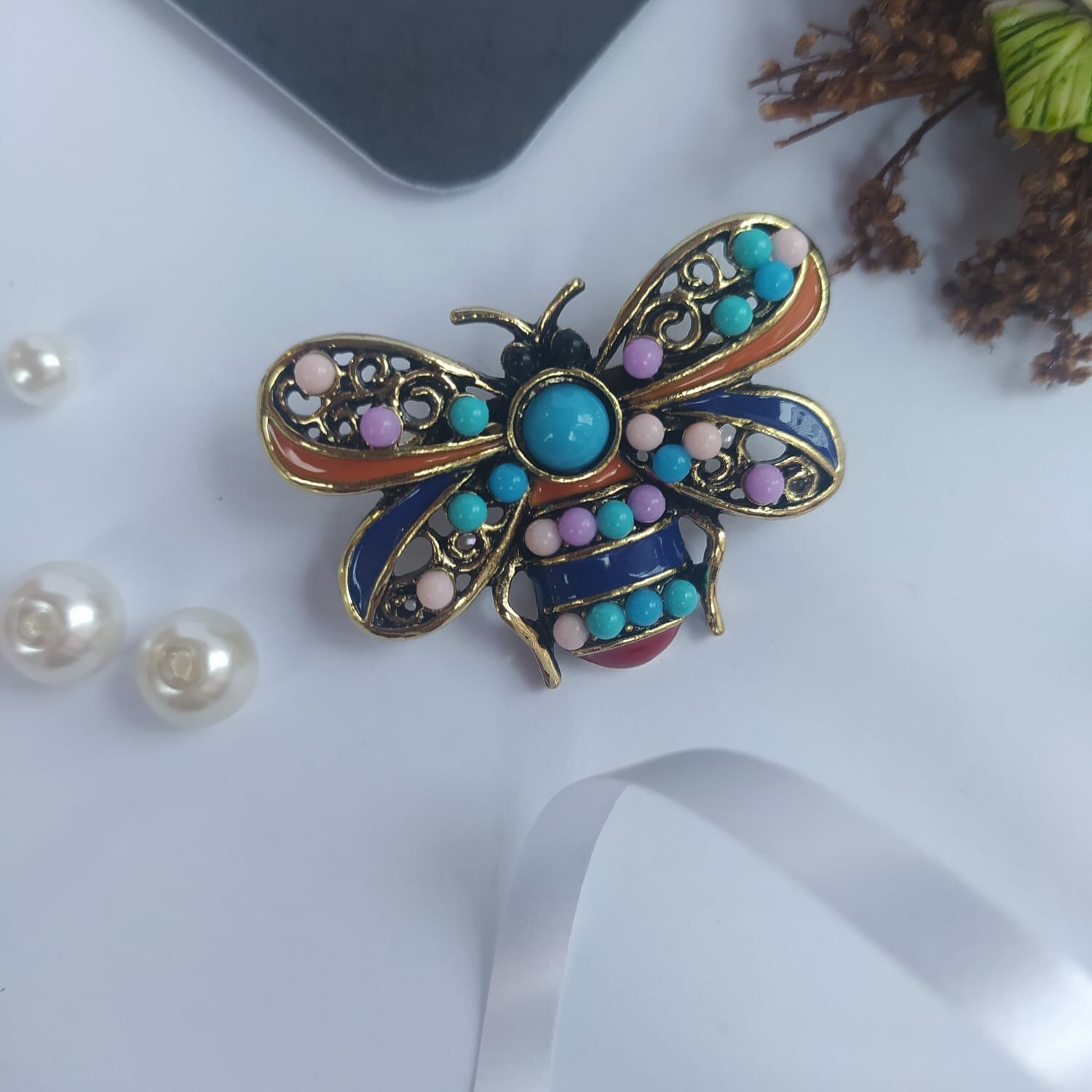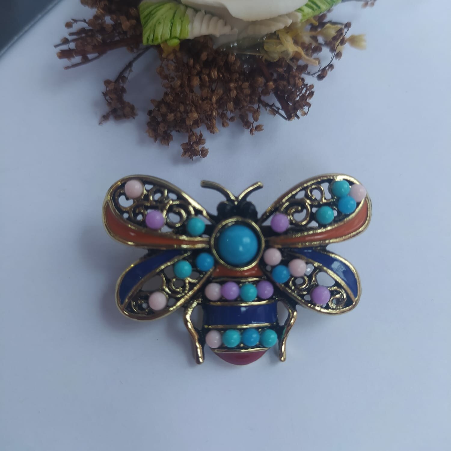 Брошь этника "Муха", цветная в чернёном золоте 4*3см