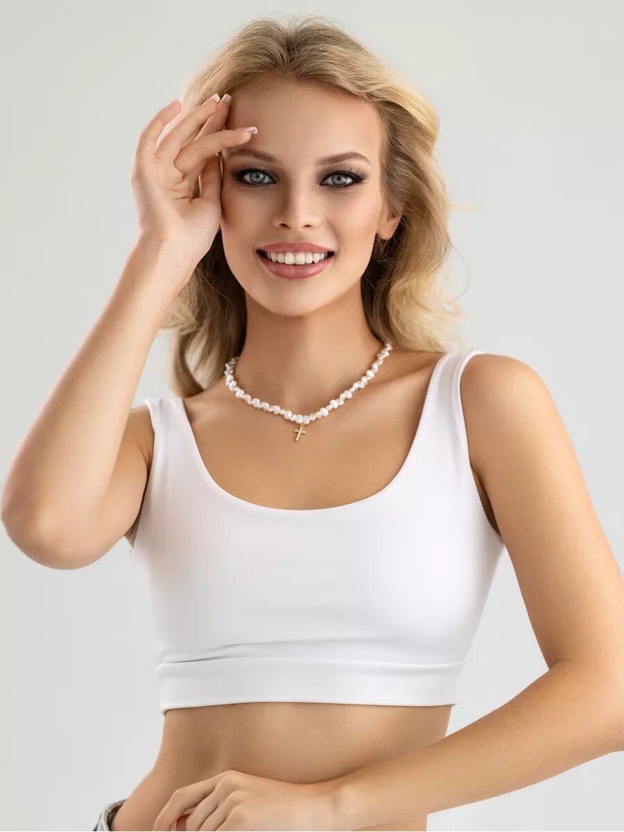 Чокер жемчуг с кулоном крестик