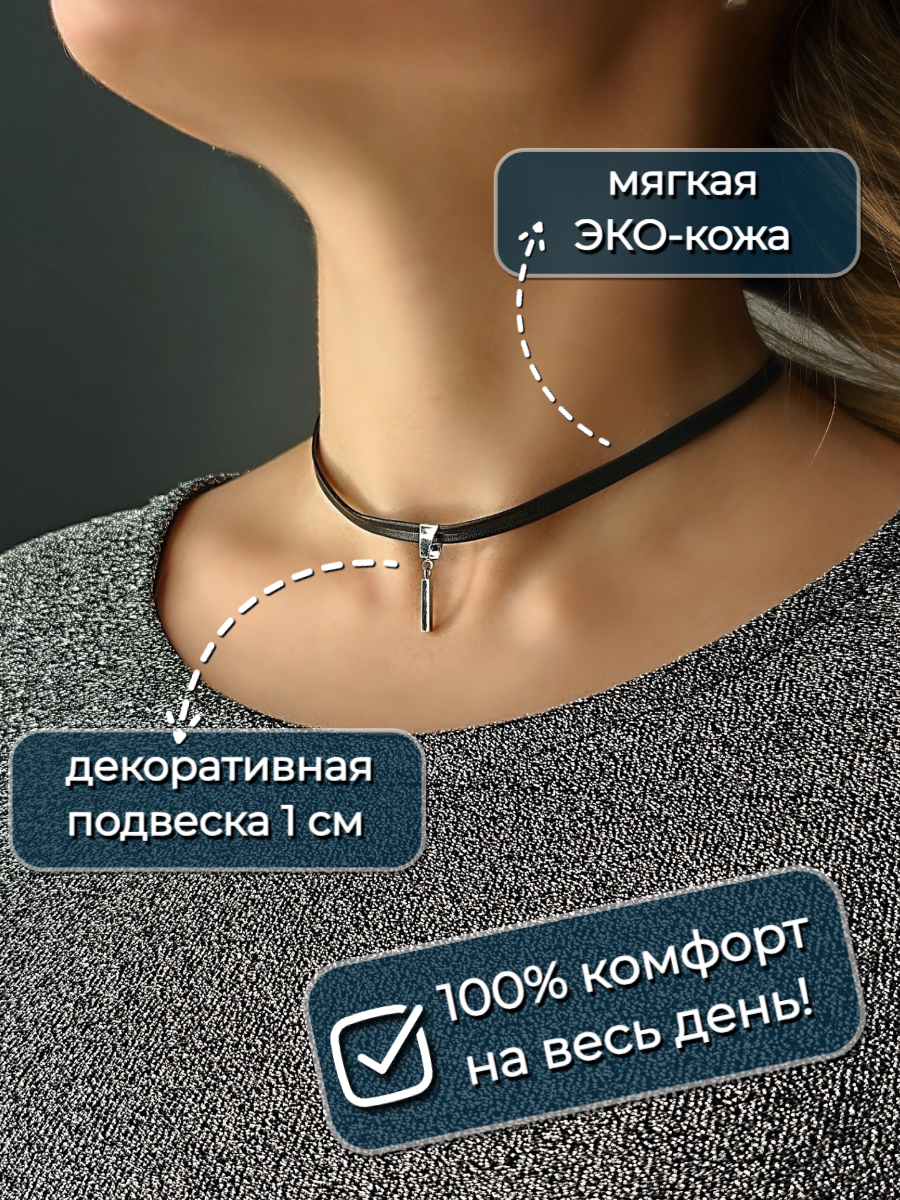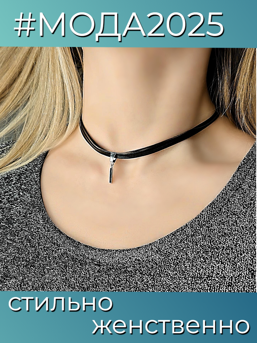 | Название модели | "Кожаный с подвеской", колье на шею, украшение для девочек и женщин, черный, серебристый |