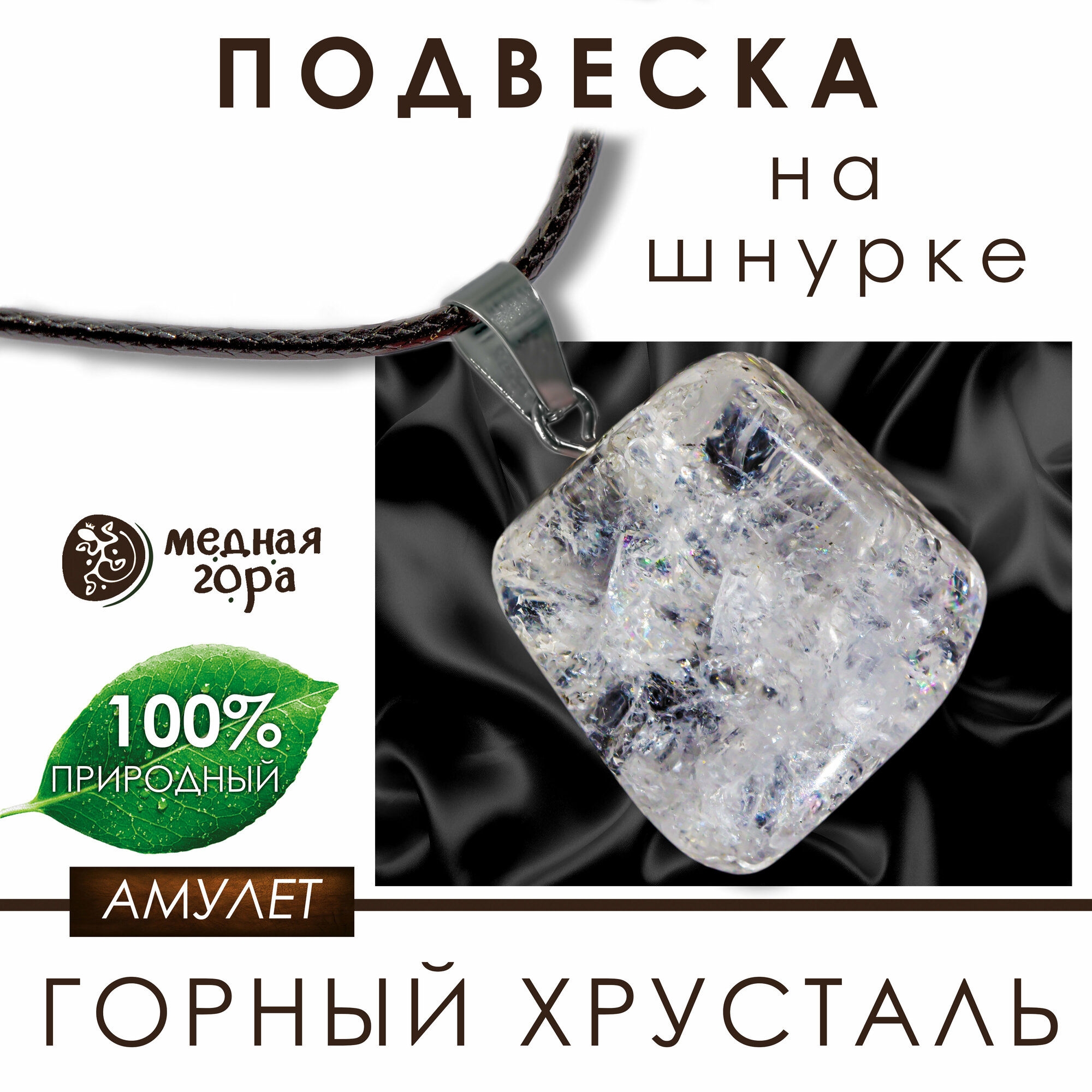 Подвеска с горным хрусталем на шнурке, амулет из горного хрусталя, оберег из натурального камня