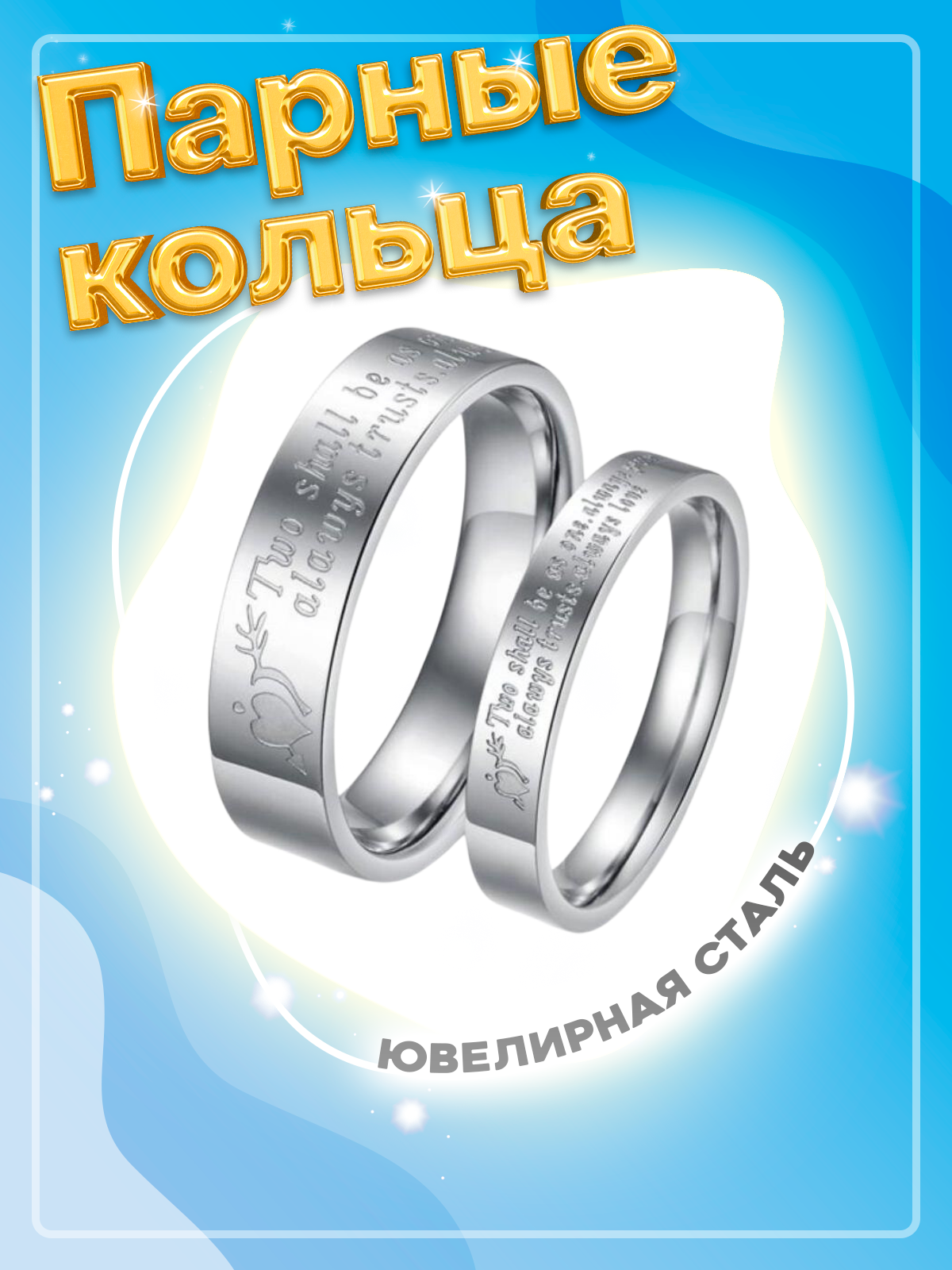 Одинаковые кольца под серебро с гравировкой / размер 18,5 / женское кольцо (3 мм)