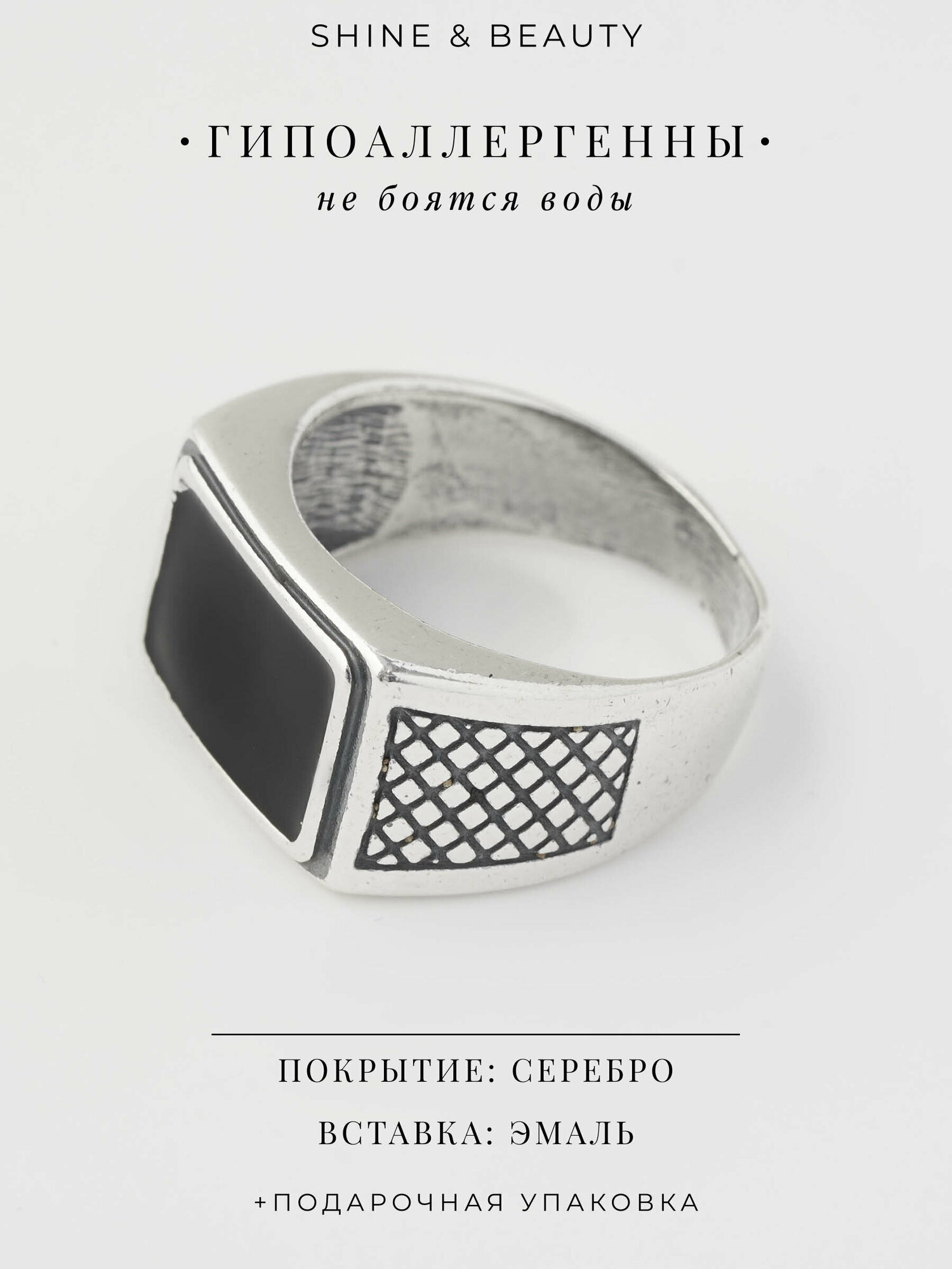 Ниже Вы можете прочитать отзывы на Печатка Shine & Beauty, эмаль, размер 21, ширина 5 мм, серебряный, черный, ознакомится с подробными характеристиками, посмотреть интересные обзоры и фотографии на Печатка Shine & Beauty, эмаль, размер 21, ширина 5 мм, серебряный, черный.