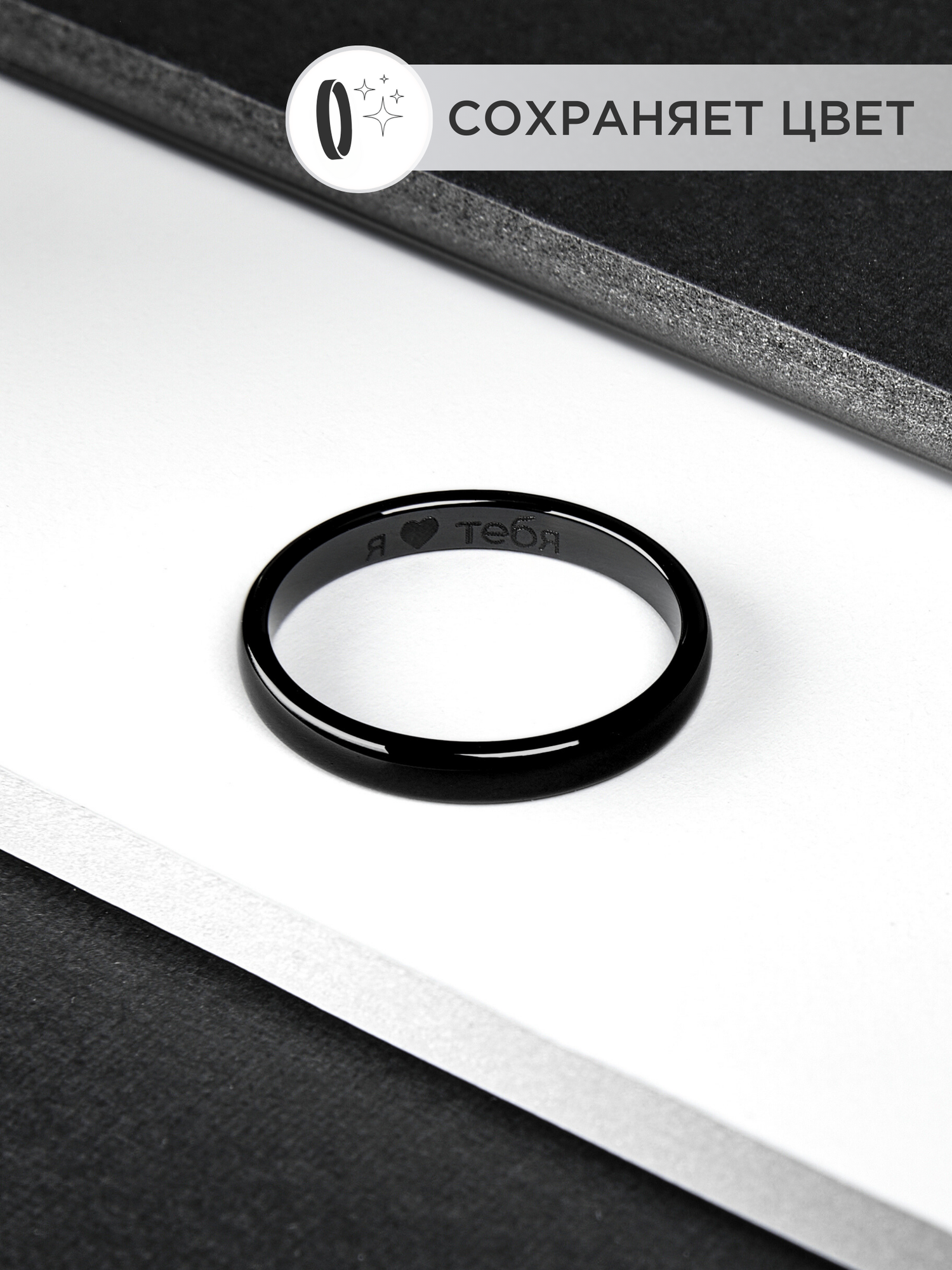 Кольцо керамическое черное "Я люблю тебя" NOIMA 16 размер, парные кольца
