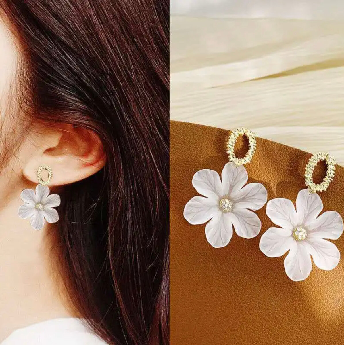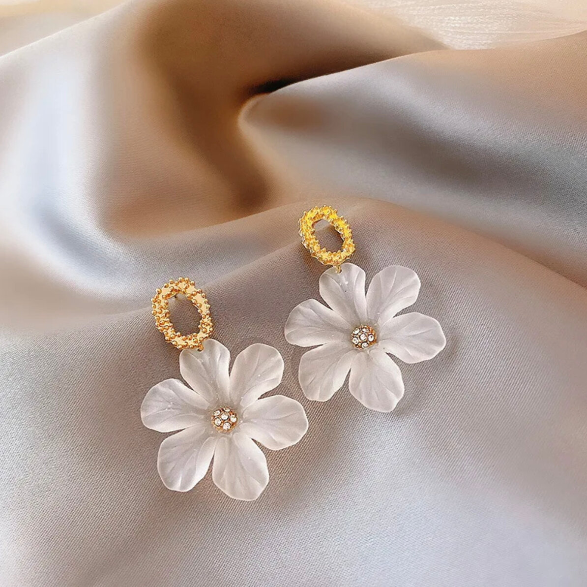 Серьги женские цветочки белого цвета бижутерия для девушки
