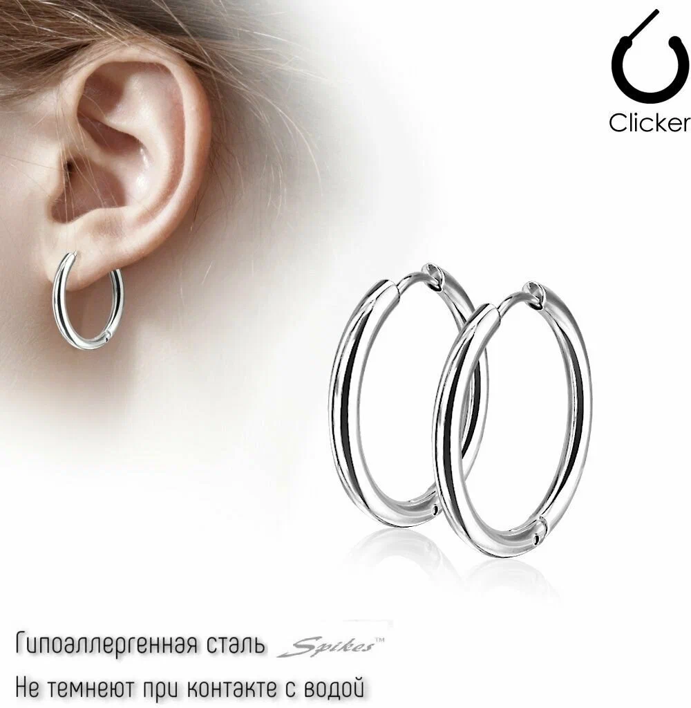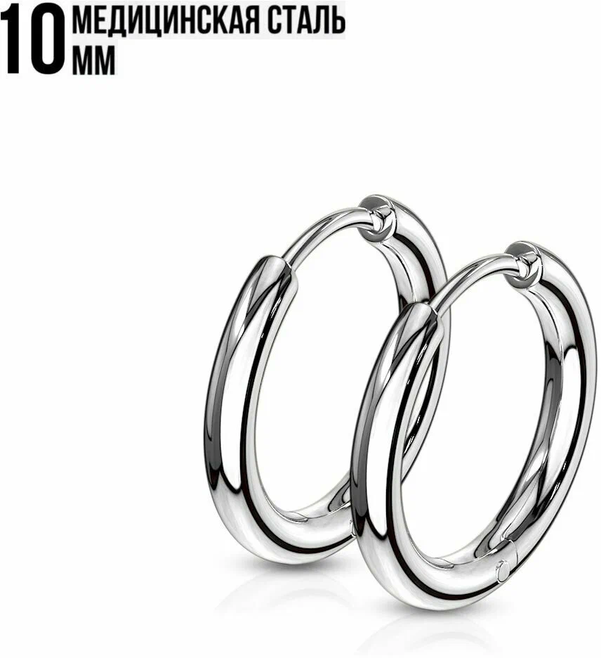 Серьги-кольца унисекс из гипоаллергенной стали, толщина 0.8mm, длина 10mm