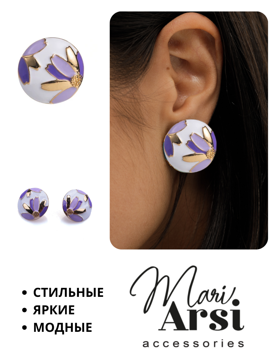 Серьги пусеты MariArsi, эмаль, размер 25 мм, сиреневый интересное: