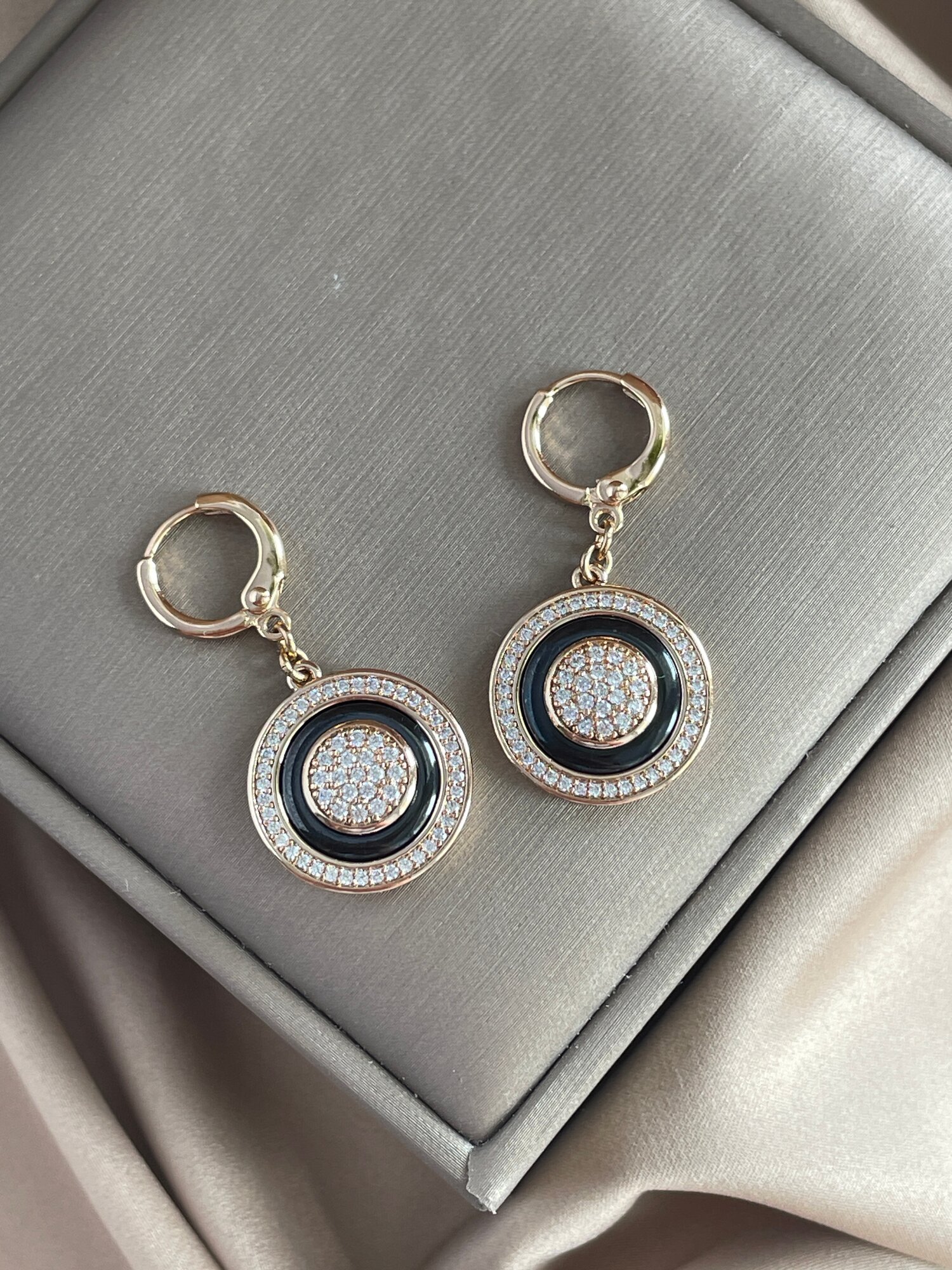 Серьги с подвесками XUPING JEWELRY, циркон, керамика, черный, золотой интересное: