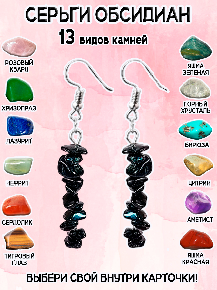 Серьги ОптимаБизнес, хризопраз, сердолик, аметист, нефрит, лазурит, горный хрусталь, обсидиан, тигровый глаз, яшма