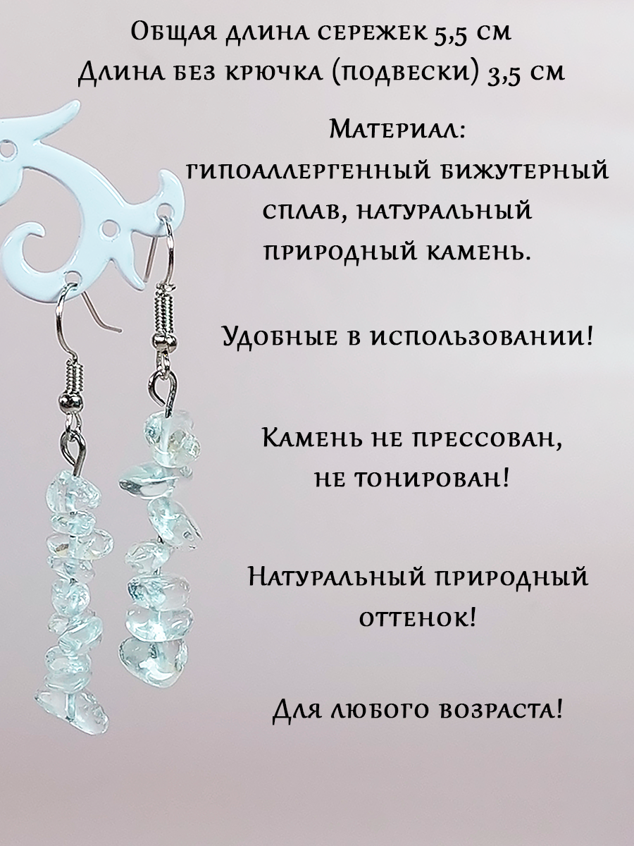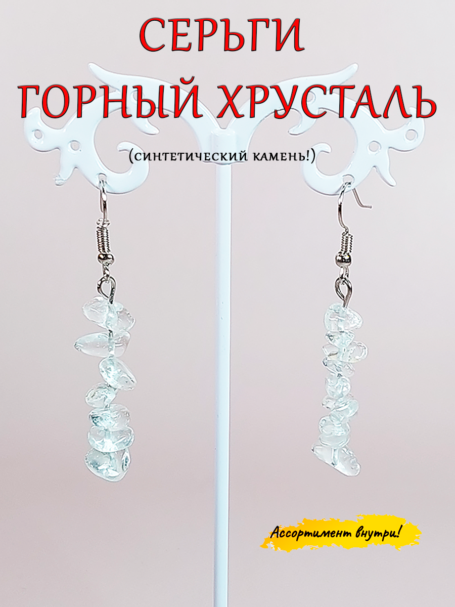 Серьги сережки натуральный камень Горный хрусталь