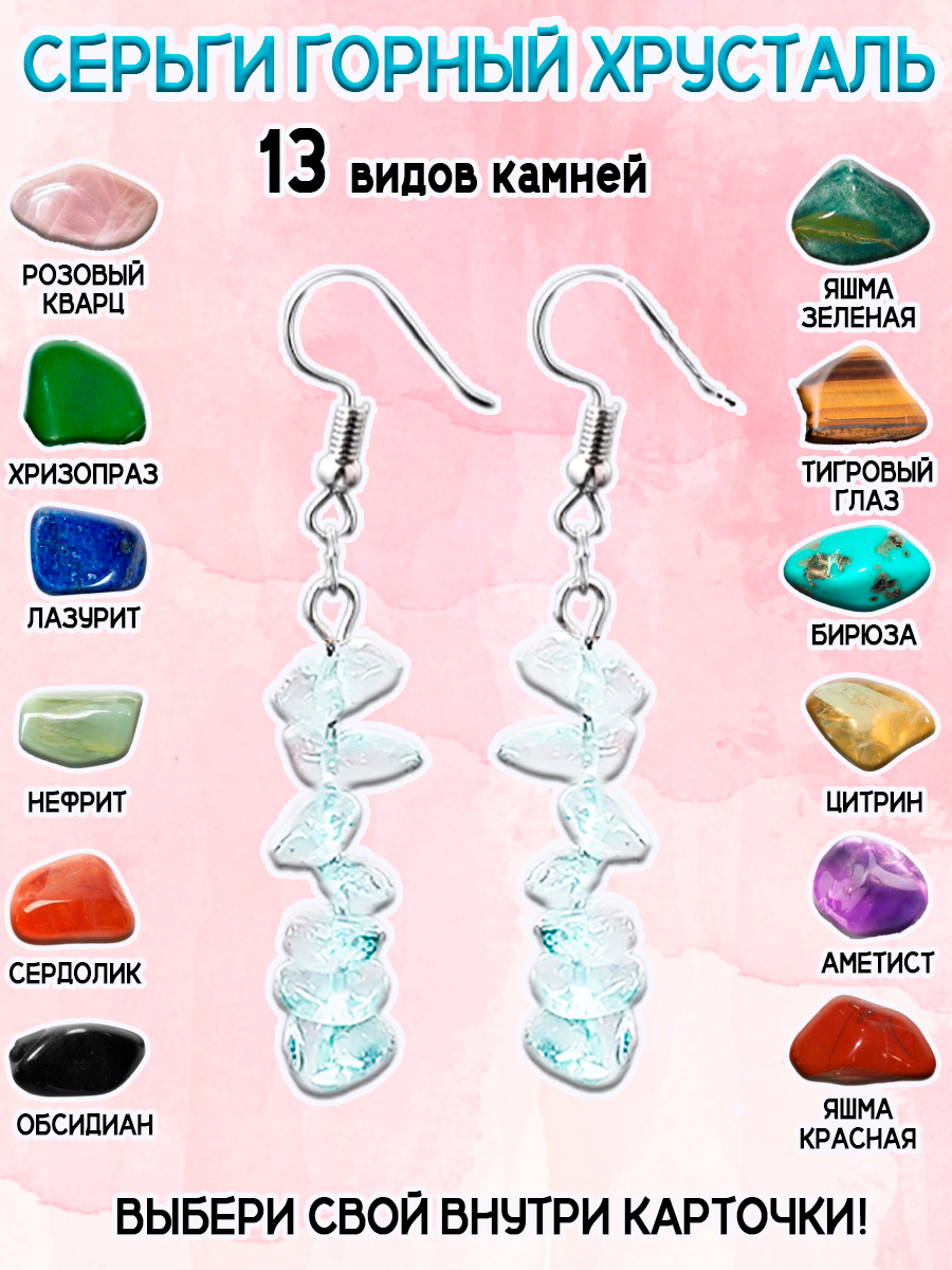 Серьги ОптимаБизнес, хризопраз, сердолик, аметист, нефрит, лазурит, горный хрусталь, обсидиан, тигровый глаз, яшма