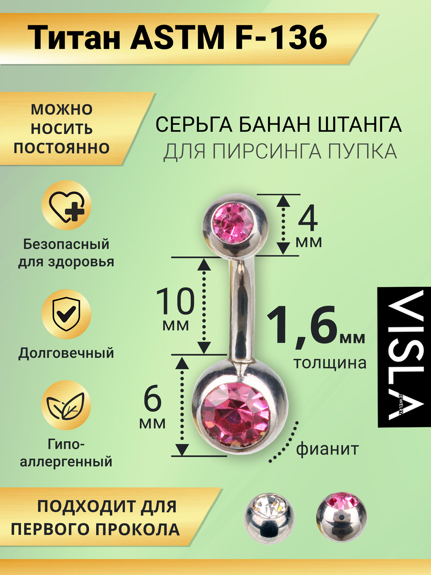 СохранитьПирсинг в пупок Visla Jewelry, размер 10 мм, длина 1 см, длина стержня 10 мм, 1 шт., розовый/красный интересное: