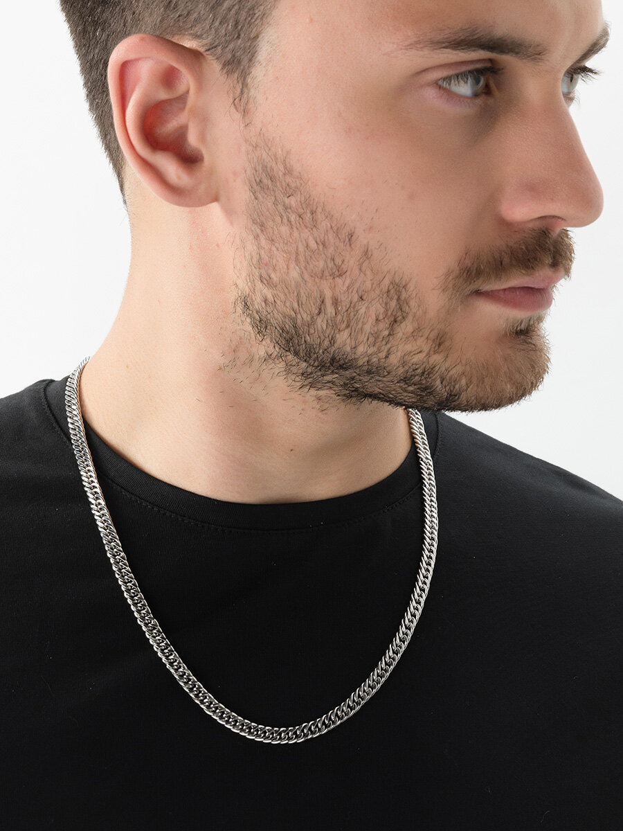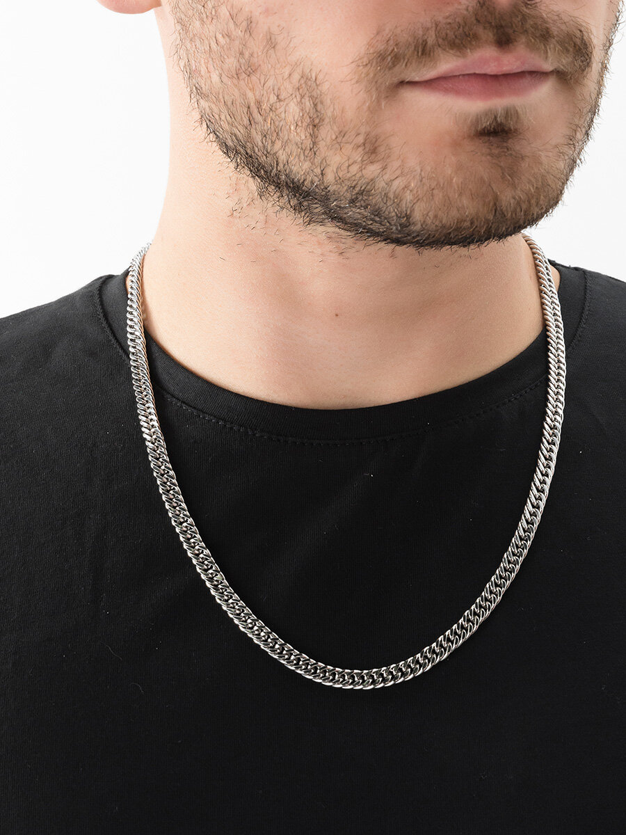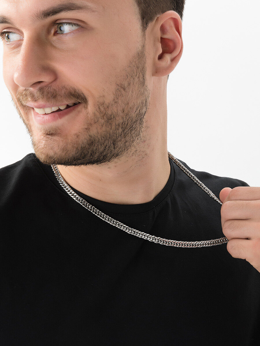 Цепочка Famodi из нержавеющей стали, 60см, ширина 6 мм, серая, панцирное плетение, карабин