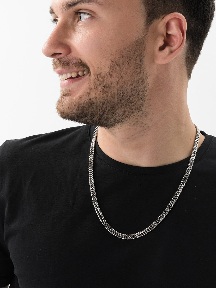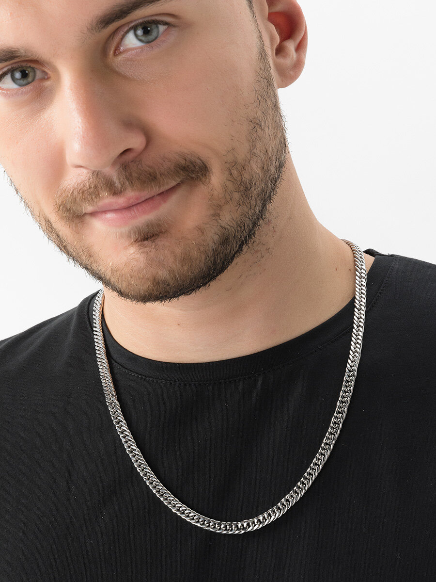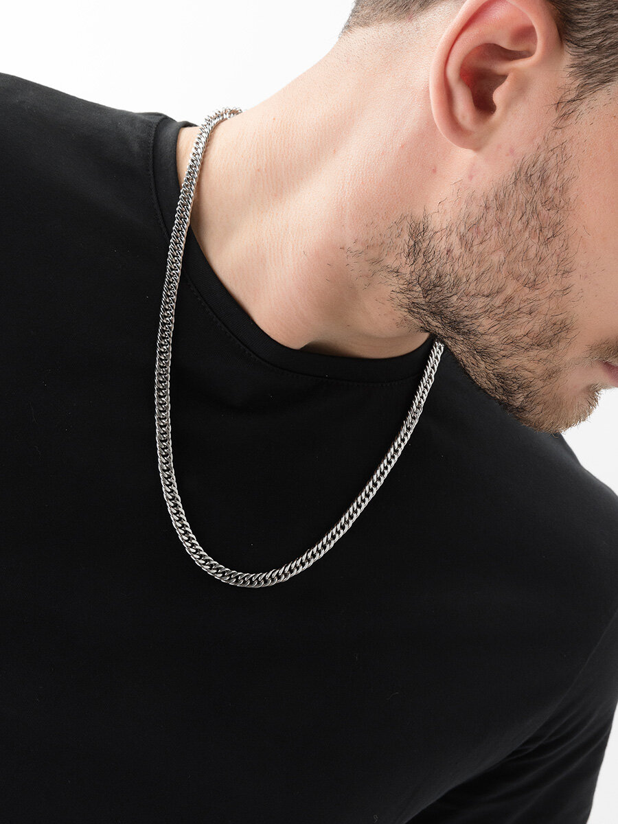 Цепочка Famodi из нержавеющей стали, 60см, ширина 6 мм, серая, панцирное плетение, карабин
