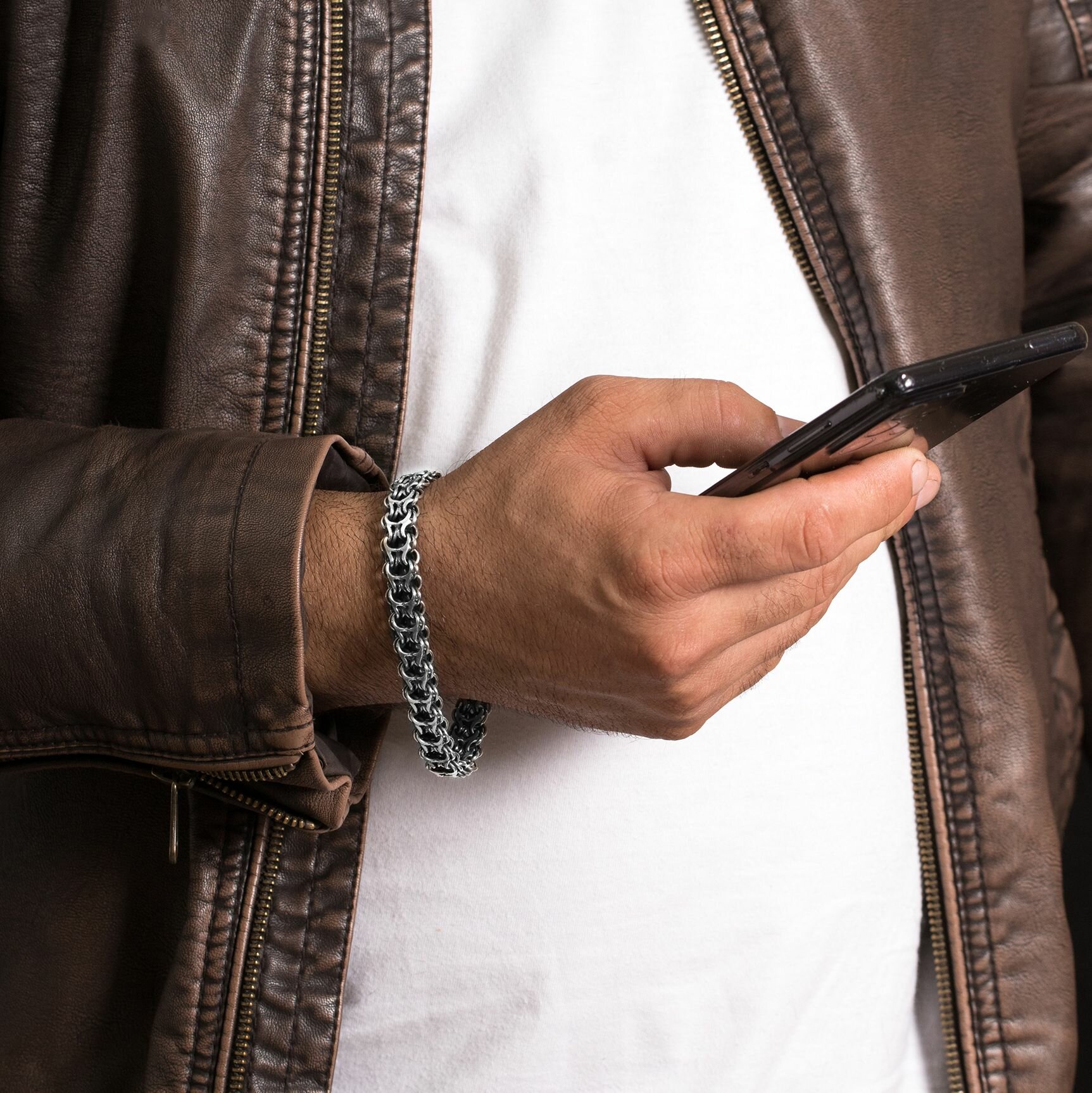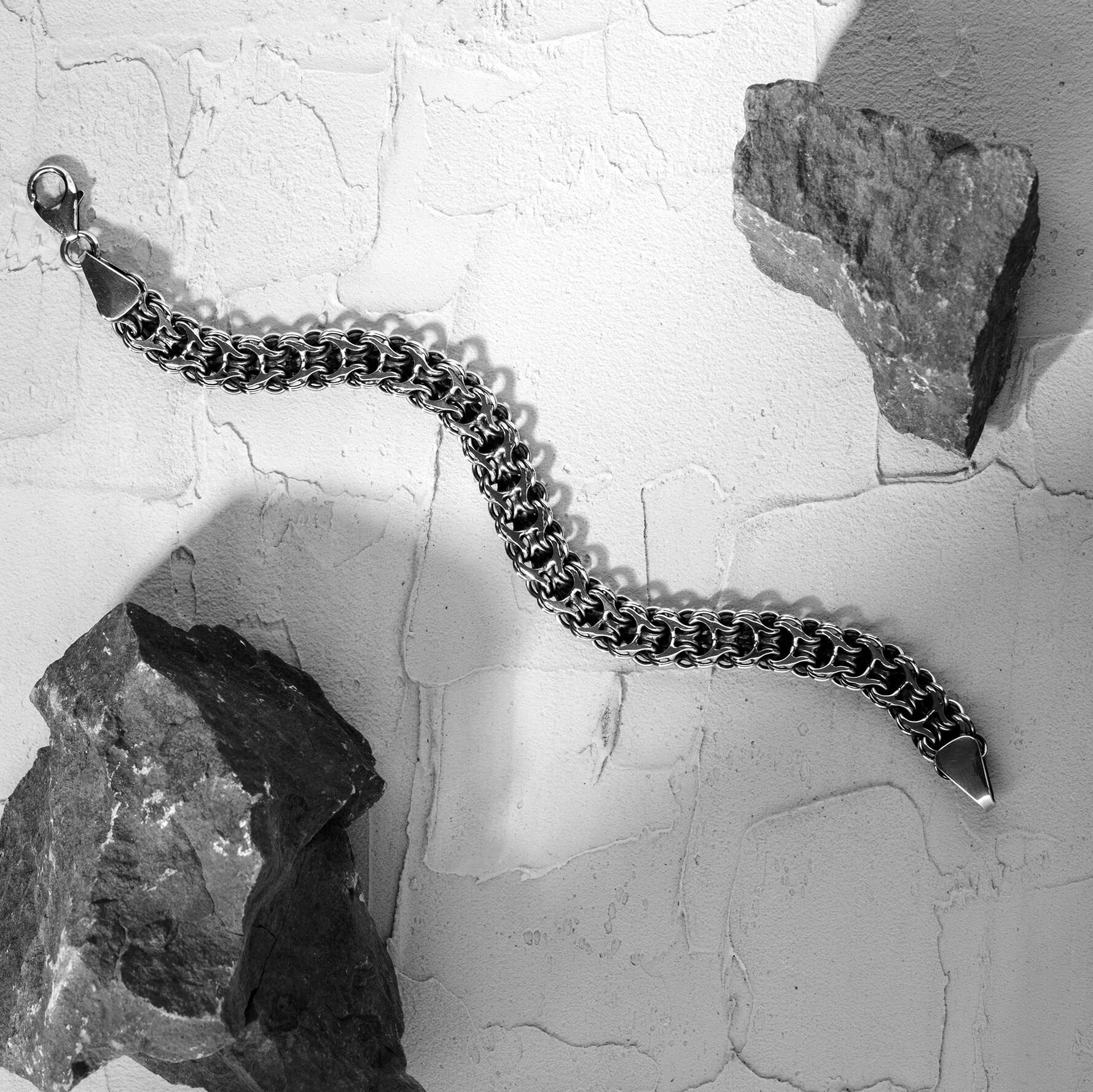Браслет JEWELRY of KUBACHI, серебро, 925 проба, оксидирование, длина 22 см., серебристый