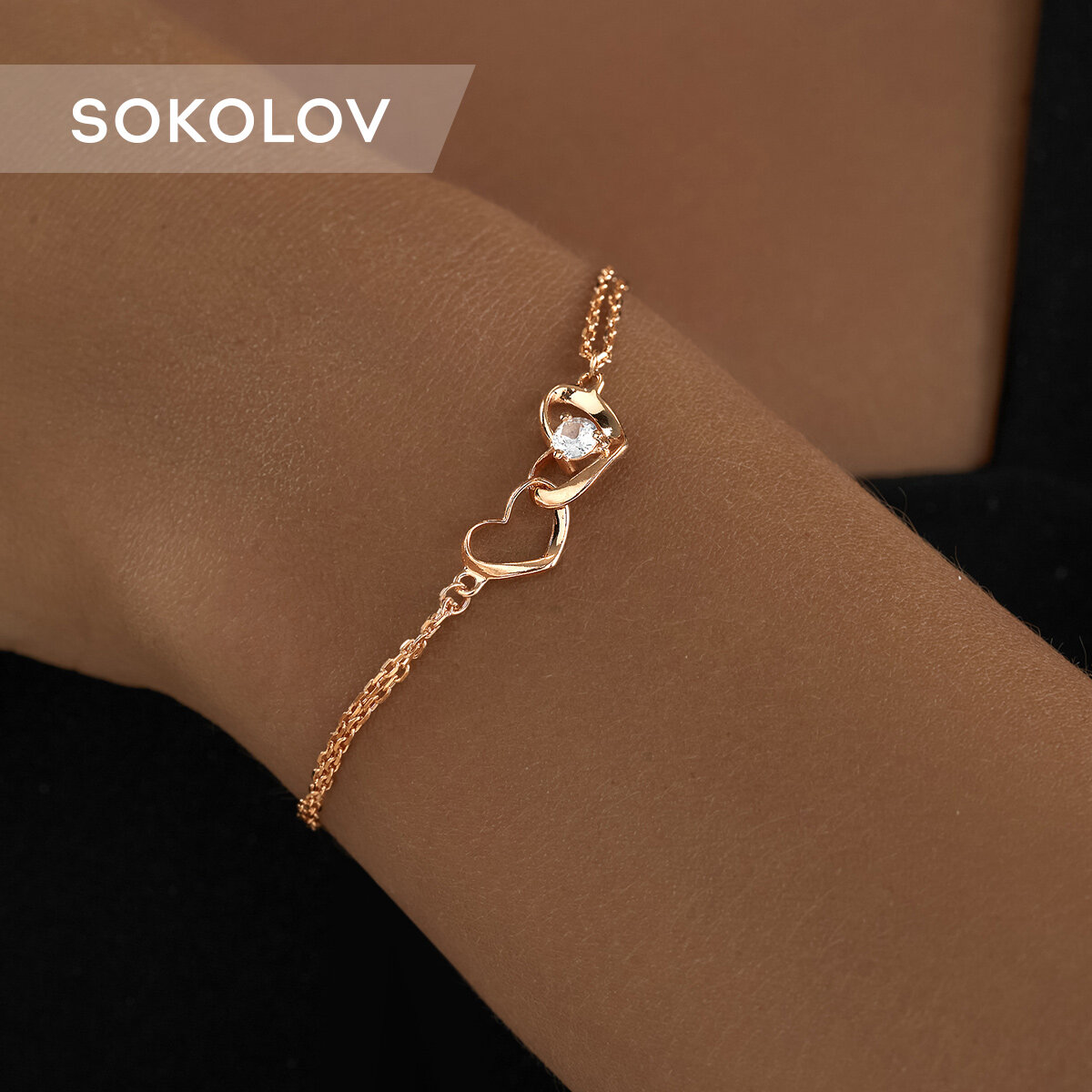 Купить Браслет SOKOLOV, серебро, 925 проба, золочение, фианит, длина 20 см., бесцветный