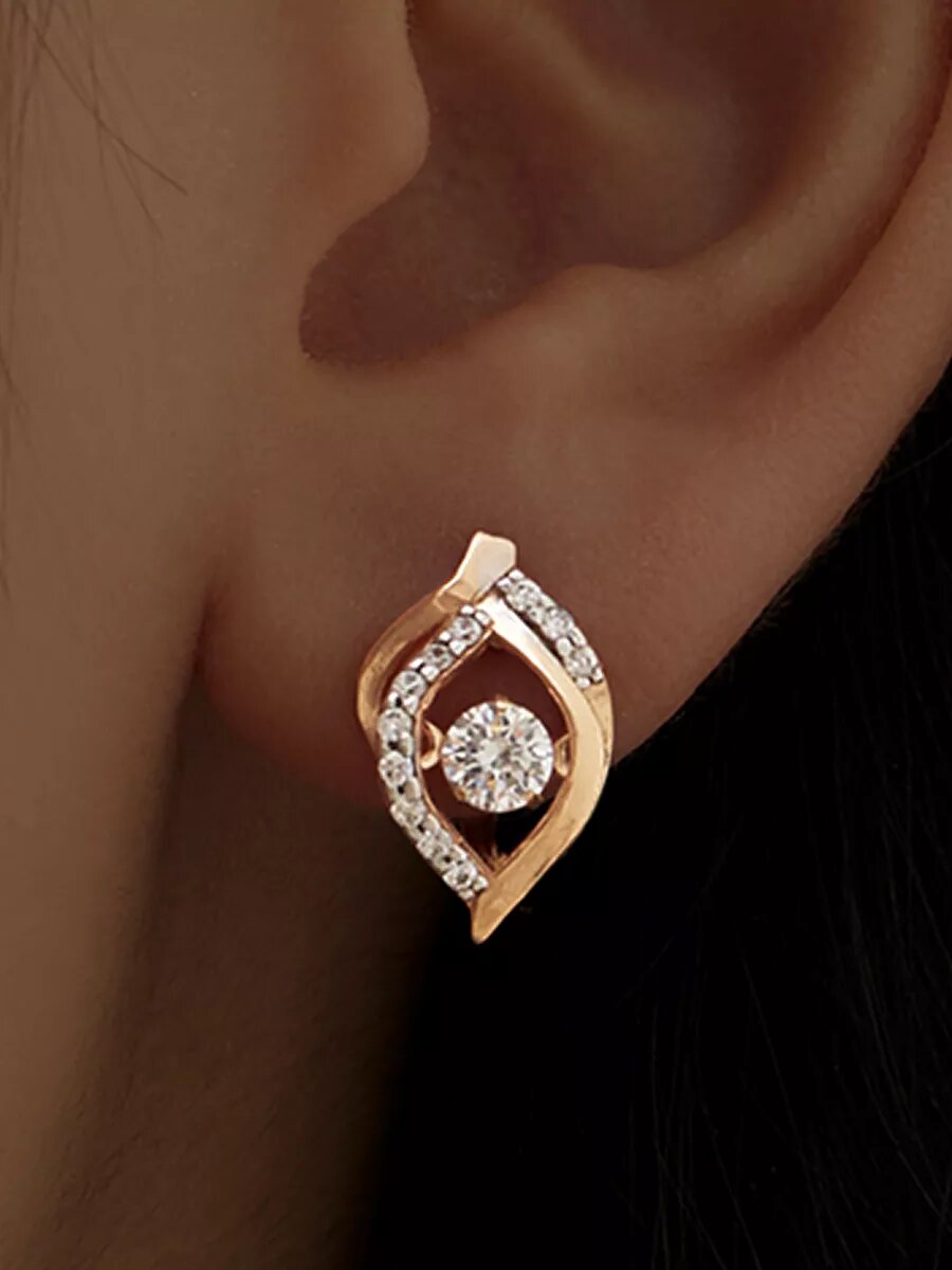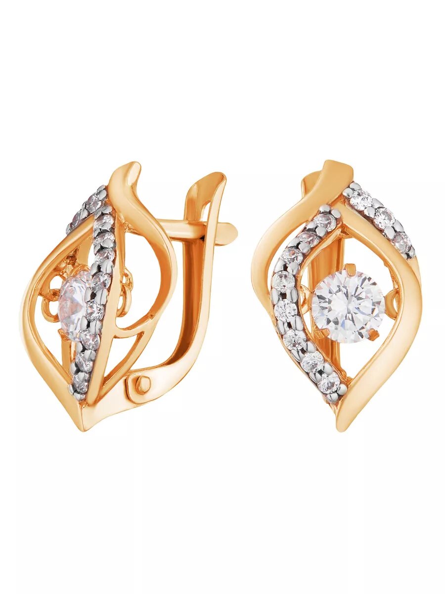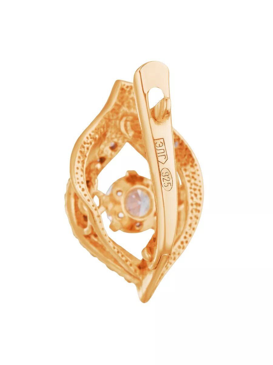 Серьги серебряные 925 пробы в позолоте с танцующими фианитами, с качающимися камнями, ср.вес изделия 2,1 гр, арт. 2127886/9п Ювелир Карат