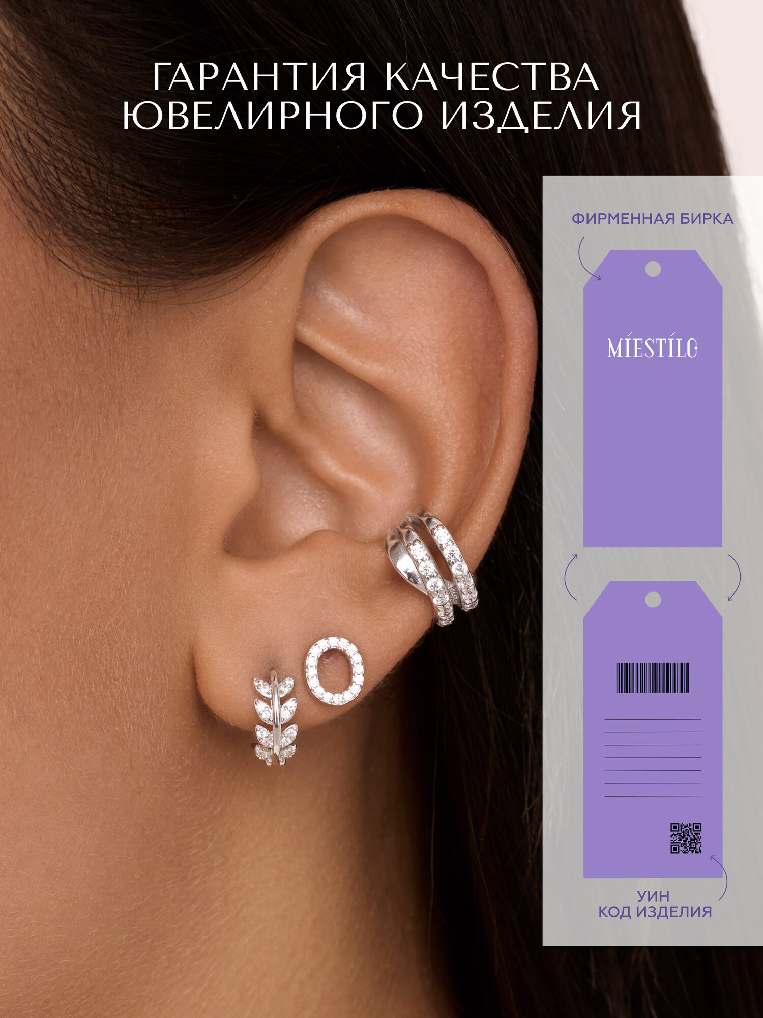 MIESTILO серьги серебро серьги кольца серьги с камнями серьги конго серьги с фианитами серебряные сережки