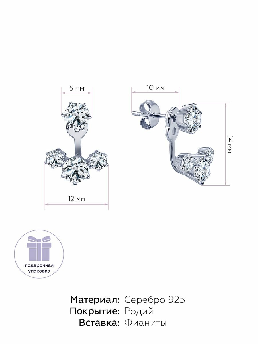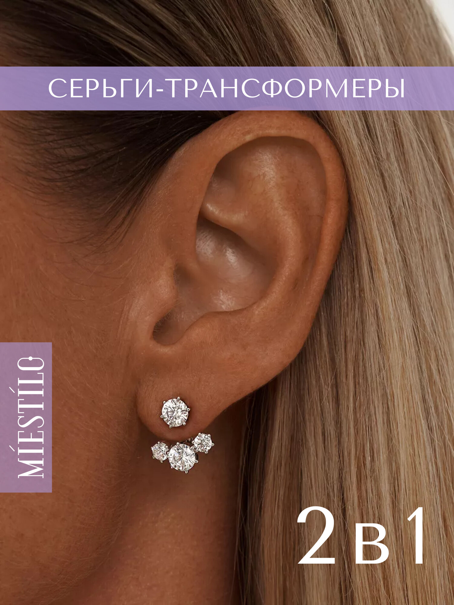 Серьги трансформеры, пусеты MIESTILO, серебро, 925 проба, родирование, фианит, , белый, серебристый интересное: