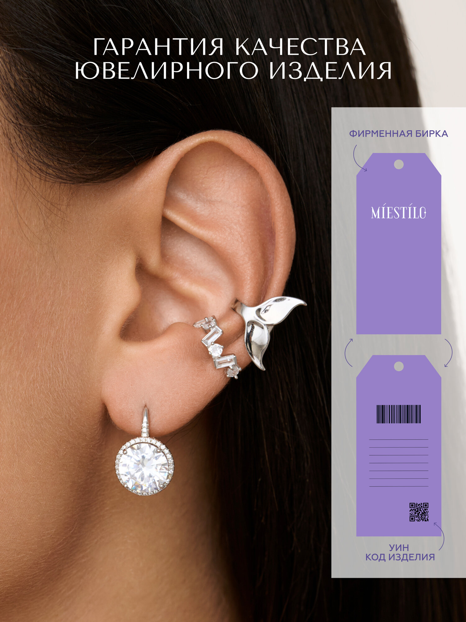 Серьги MIESTILO кафф моносерьга серебро