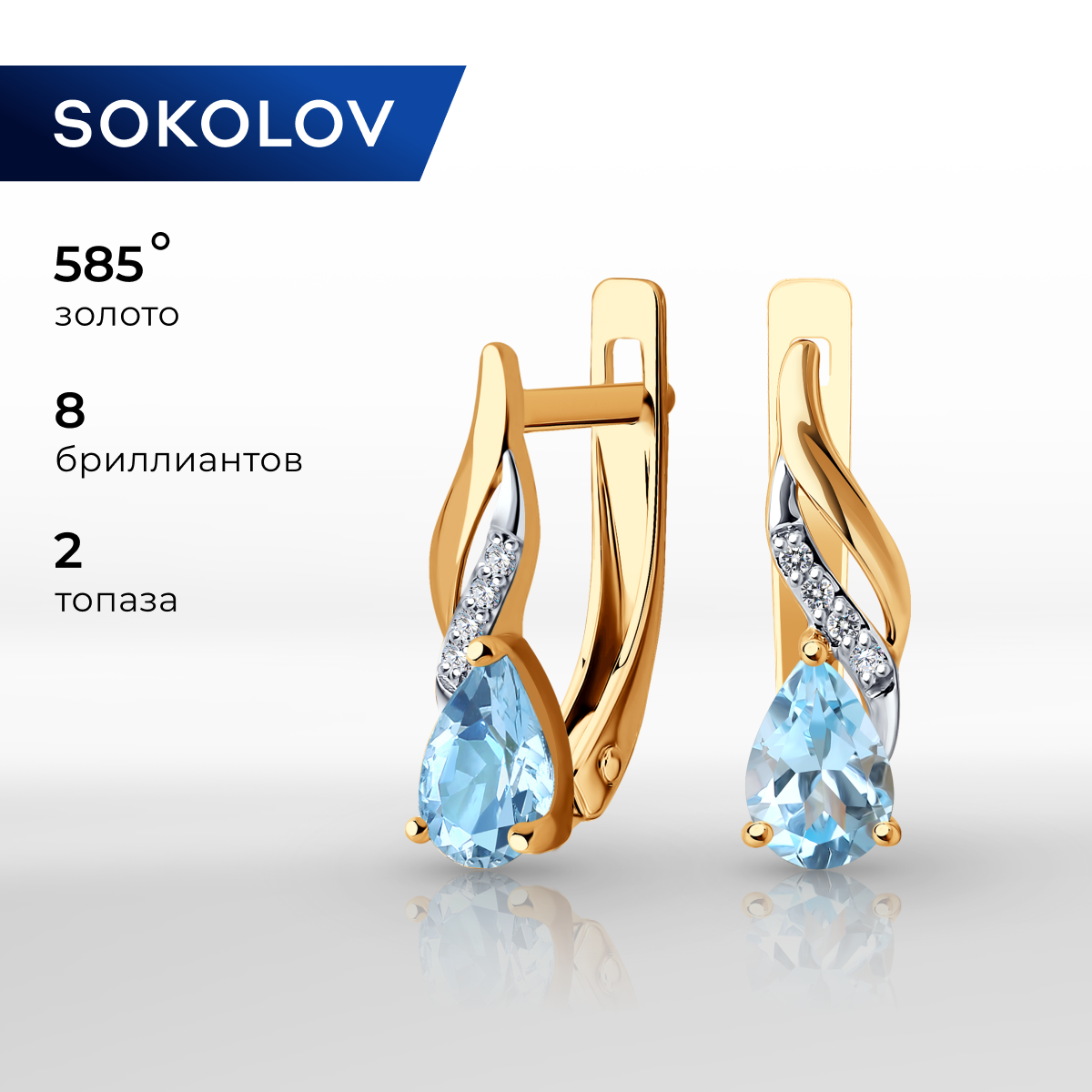 Купить Серьги SOKOLOV, красное золото, 585 проба, бриллиант, топаз, размер 16 мм