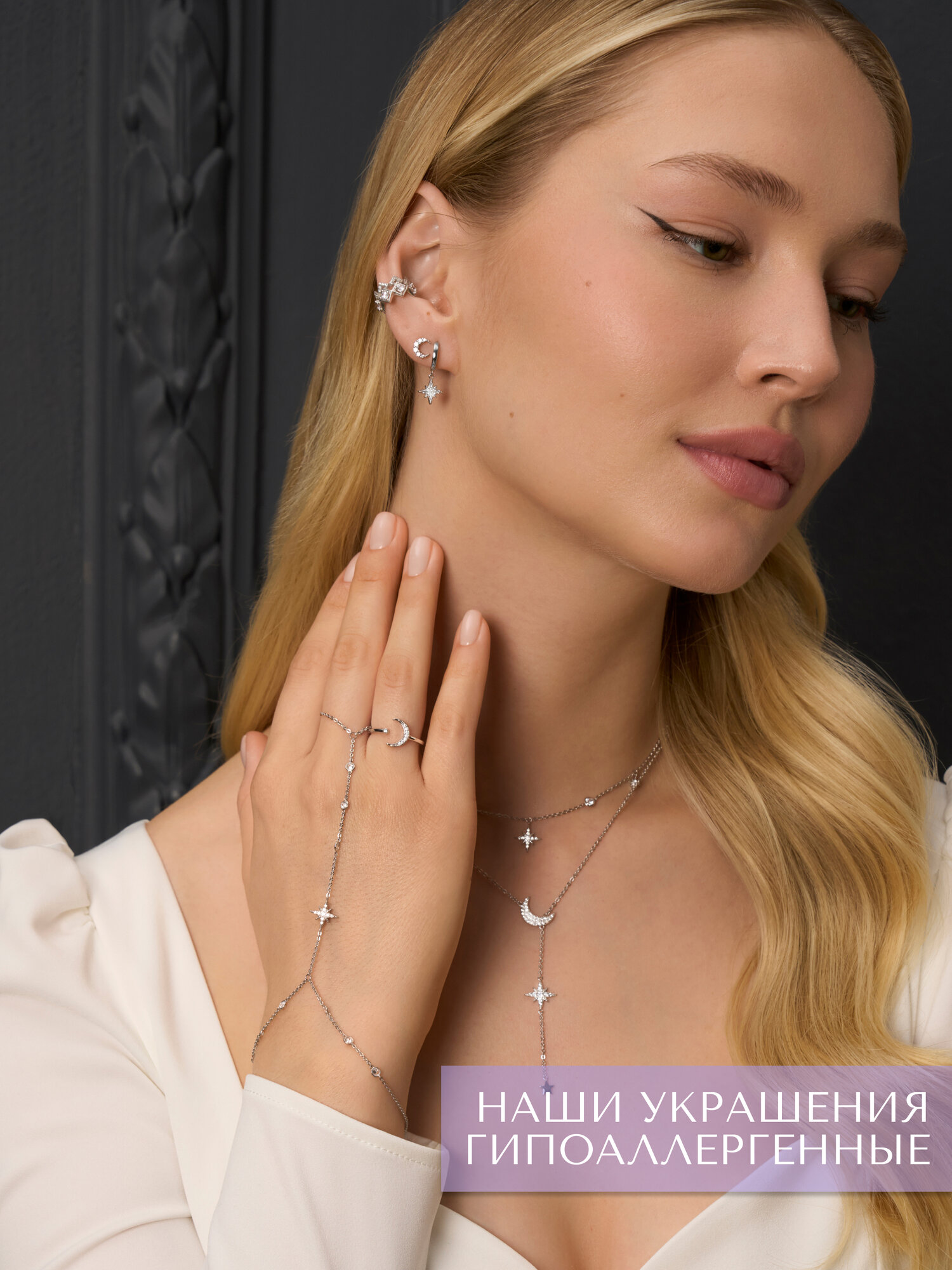 Серьги конго MIESTILO, серебро, 925 проба, родирование, фианит, размер 10 мм, длина 2 см, , серебристый интересное: