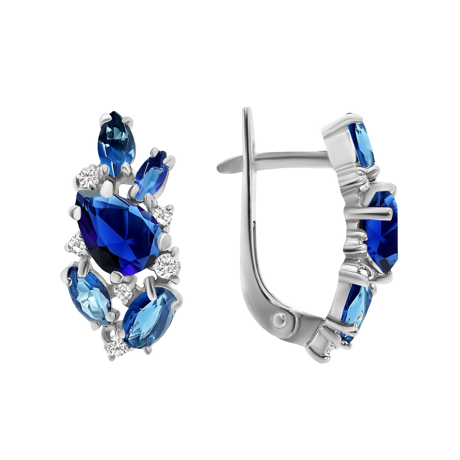 Купить Серьги Яхонт, серебро, 925 проба, сапфир синтетический, , бесцветный, синий