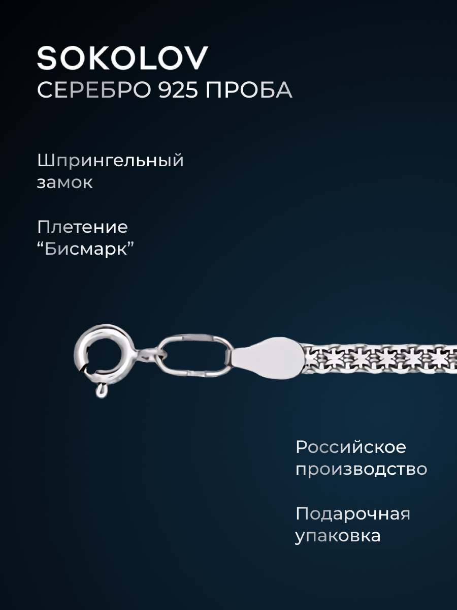 Цепь SOKOLOV из серебра, плетение Бисмарк двойной, 925 проба 968050502, размер 50 см