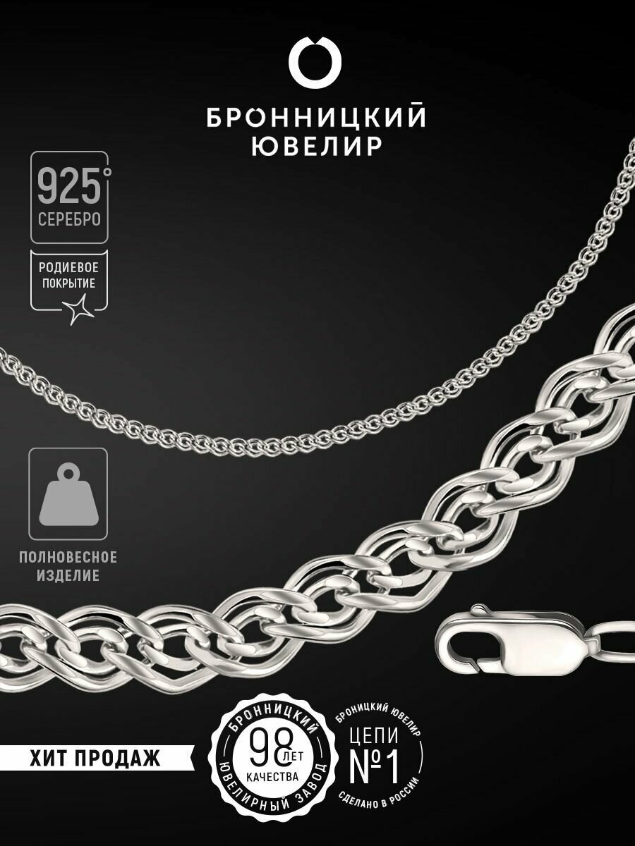 Купить Цепь Бронницкий Ювелир, серебро, 925 проба, родирование, длина 60 см, средний вес 6.26 г, , серебристый