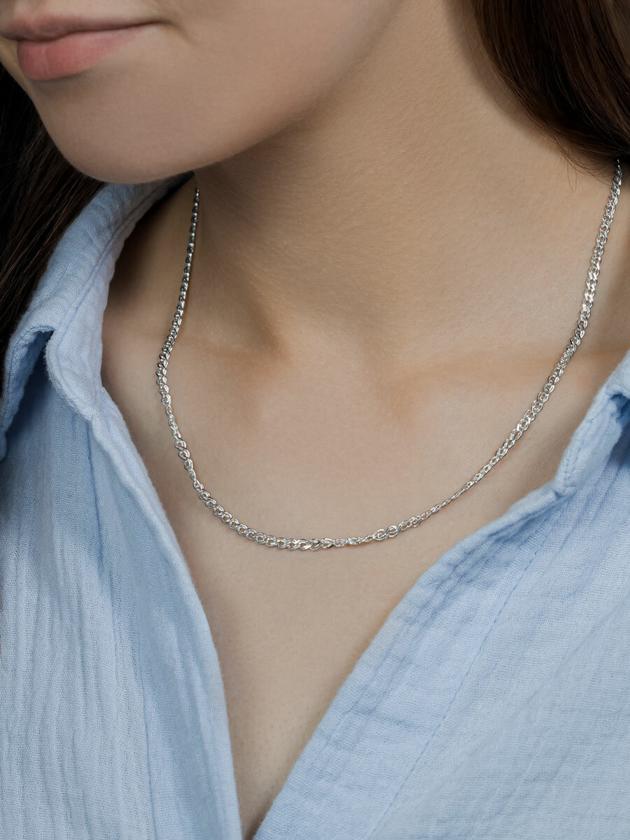Купить Цепь Бронницкий Ювелир, серебро, 925 проба, родирование, длина 45 см, средний вес 4.8 г, , серебристый