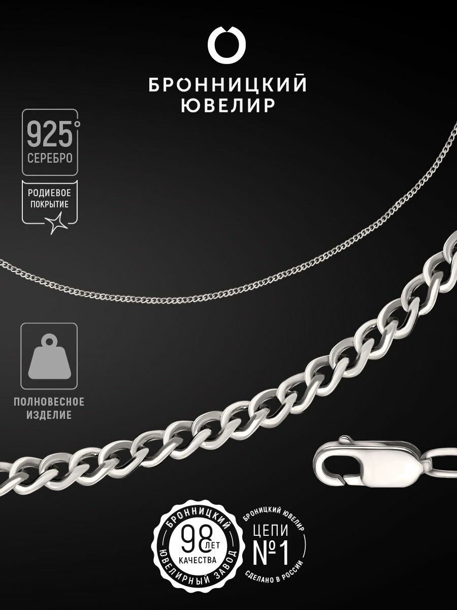 Купить Цепь Бронницкий Ювелир, серебро, 925 проба, родирование, длина 50 см, средний вес 1.54 г, , серебристый
