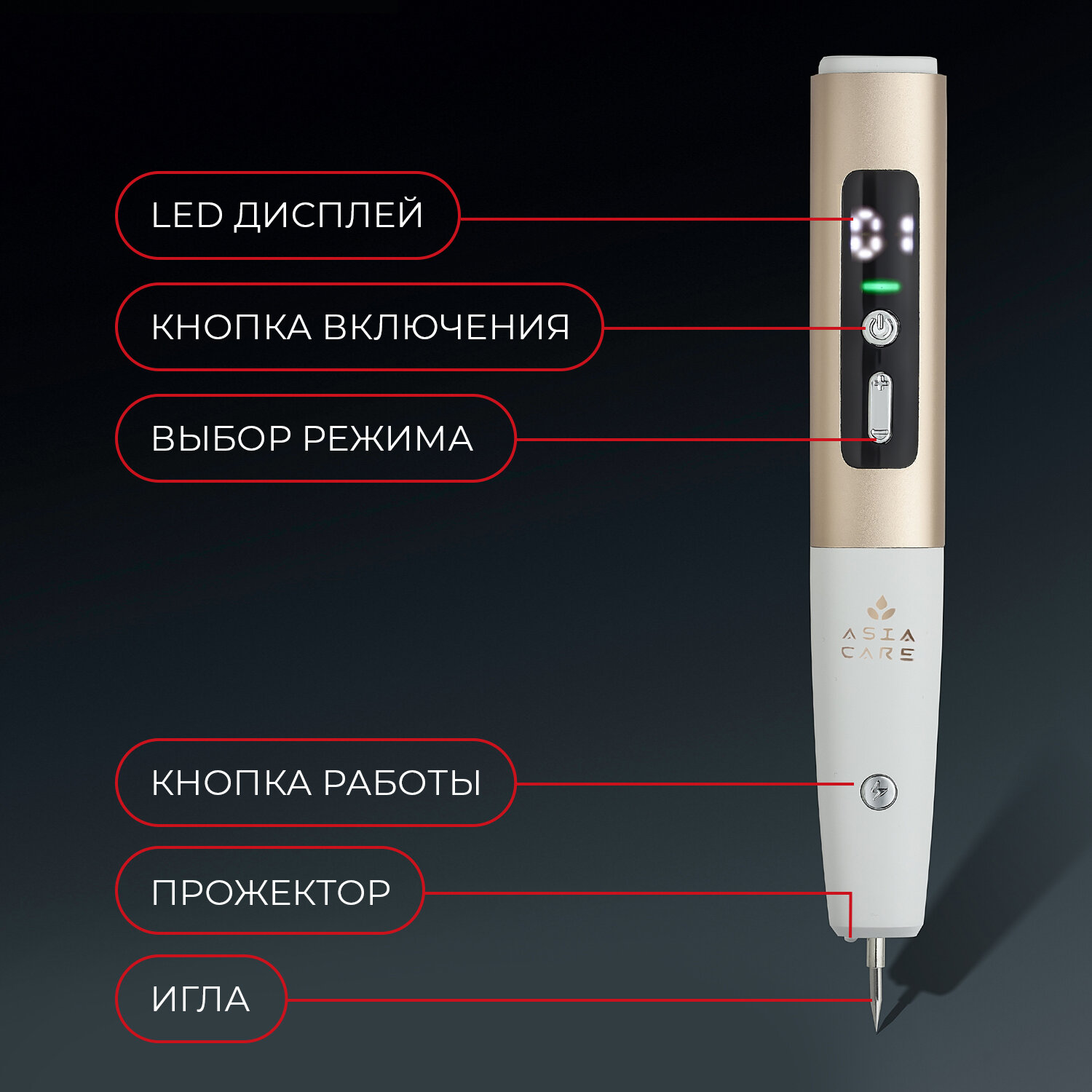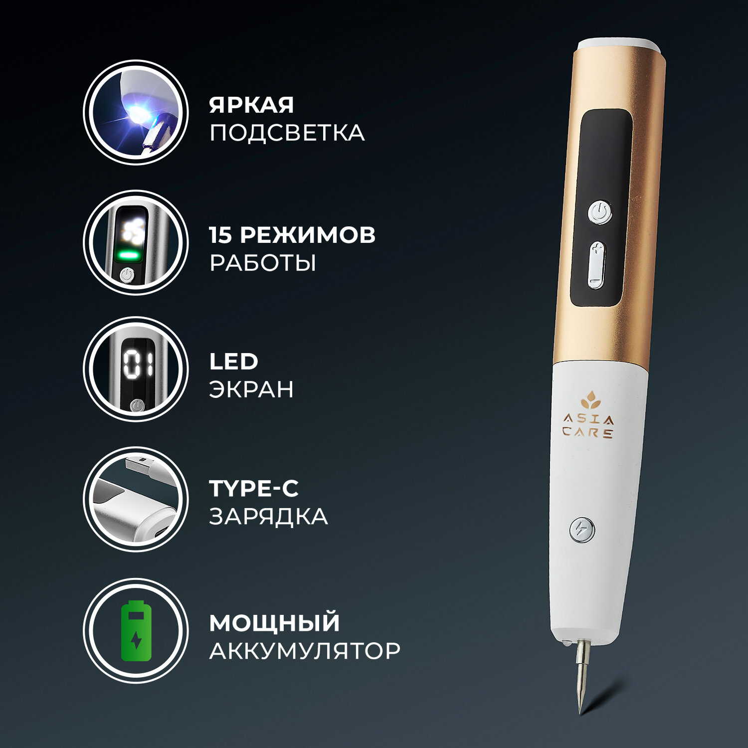Косметологический аппарат от бородавок и папиллом Asia Care, ручка для удаления папиллом и бородавок, коагулятор, золотой