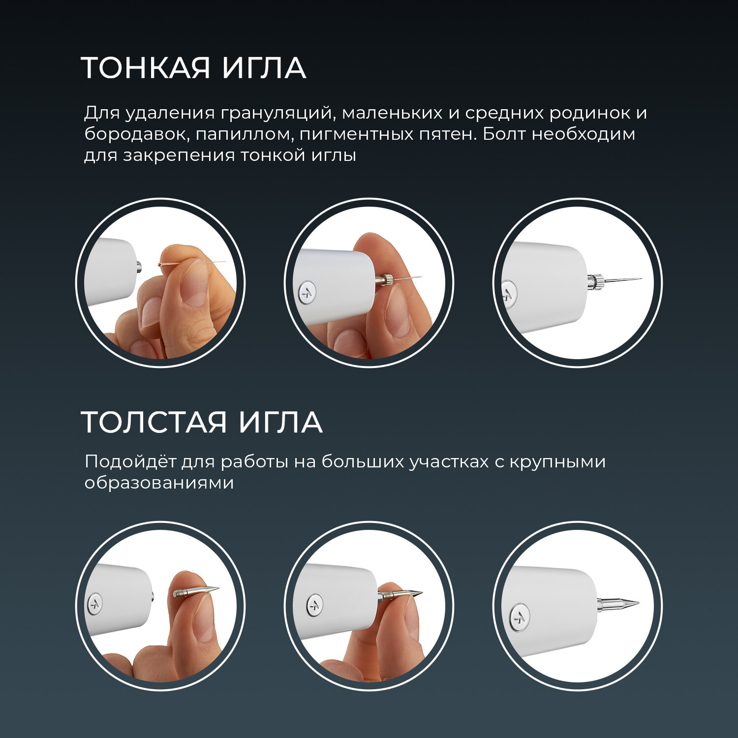 | Подробная комплектация | Косметический аппарат - 1шт; Толстая игла - 1 шт; Тонкая игла - 10 шт; USB кабель - 1шт; Инструкция - 1 шт; Приветственная карточка - 1 шт |