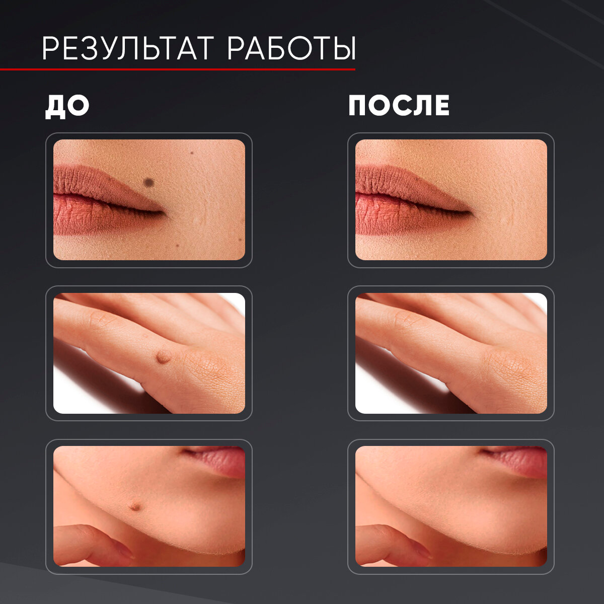 | Процедура | коагуляция, удаление бородавок, удаление пигментных пятен, удаление тату |