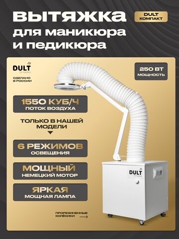 Вытяжка-пылесос DULT Компакт, для маникюра и педикюра, напольная, 1550м3/ч, LED-подсветка интересное:
