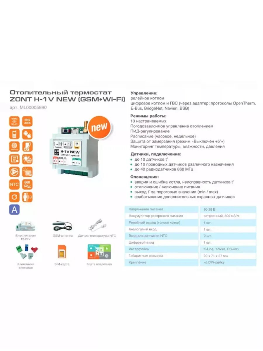 Термостат ZONT H-1V NEW / Wi-Fi и GSM на DIN-рейку интересное: