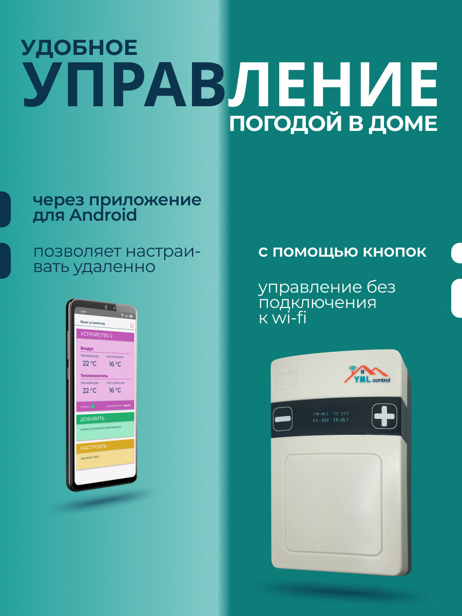 Терморегулятор котла YML-C (trw) с радиодатчиком воздуха WiFi 2.4 ГГц управление через интернет в Android приложении интересное: