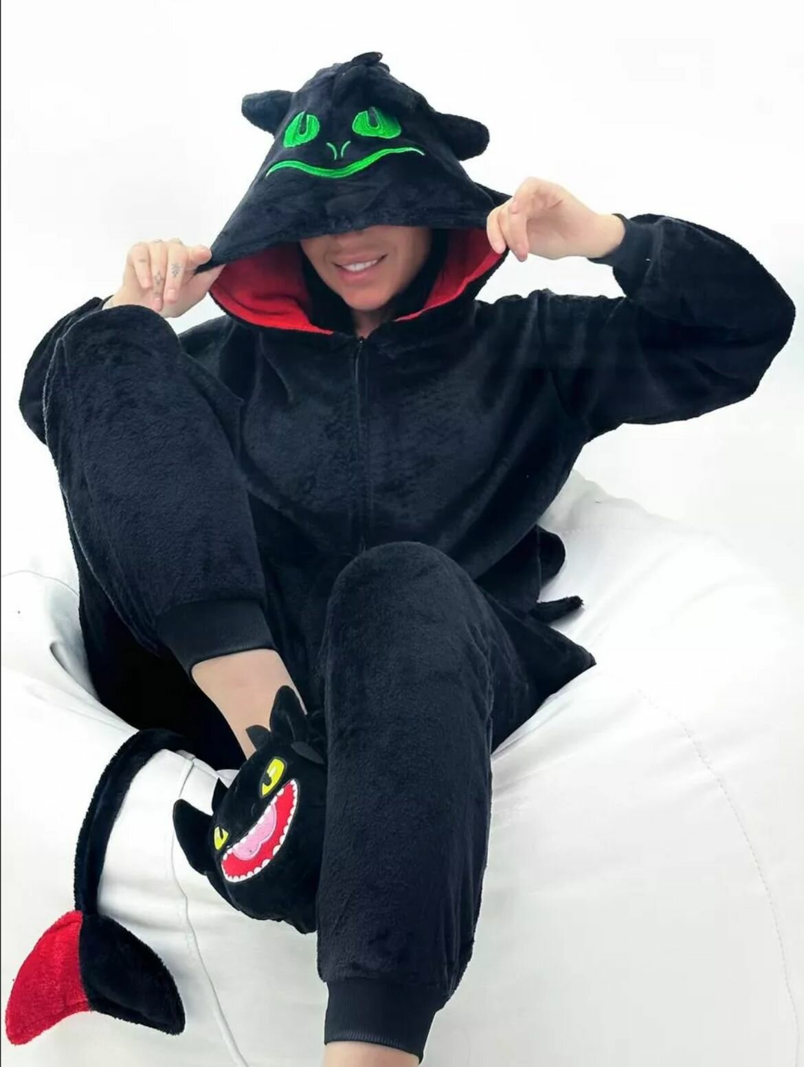 Кигуруми пижама черный Дракон беззубик Для взрослых и детей, унисекс, костюм на утренник. Фемели лук.