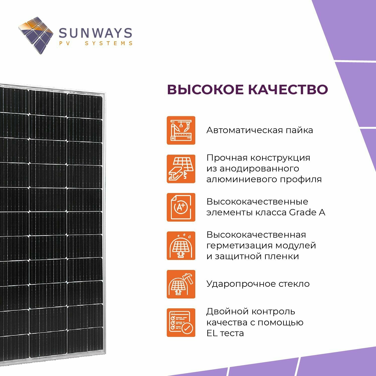 Купить Комплект солнечных панелей FSM 150M M10 SUNWAYS, солнечная батарея для дома 150 Вт, для дачи, 12В, 2шт.