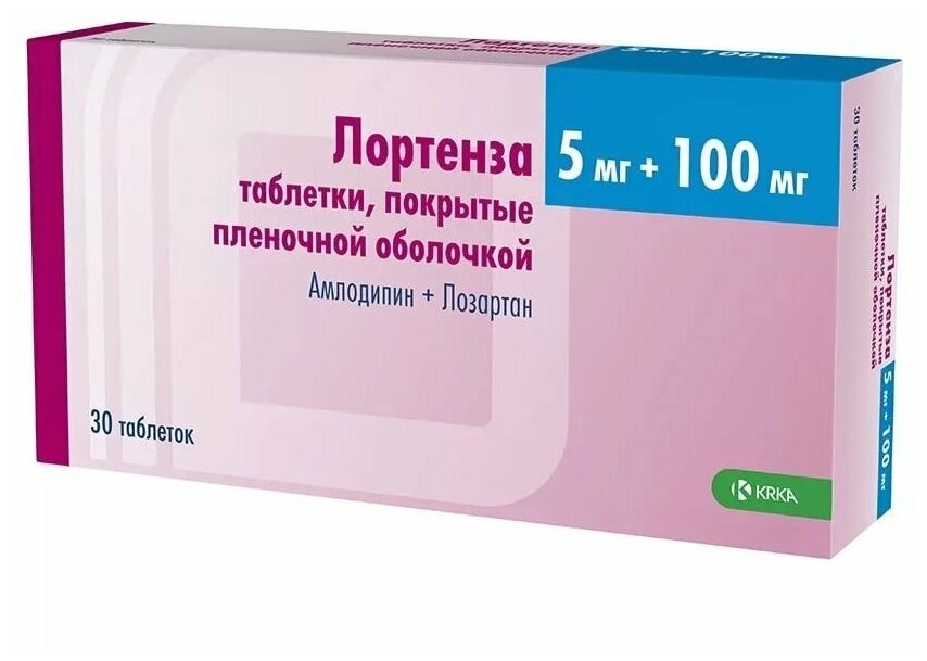 Лортенза, таблетки покрыт. плен. об. 5 мг+100 мг, 30 шт.