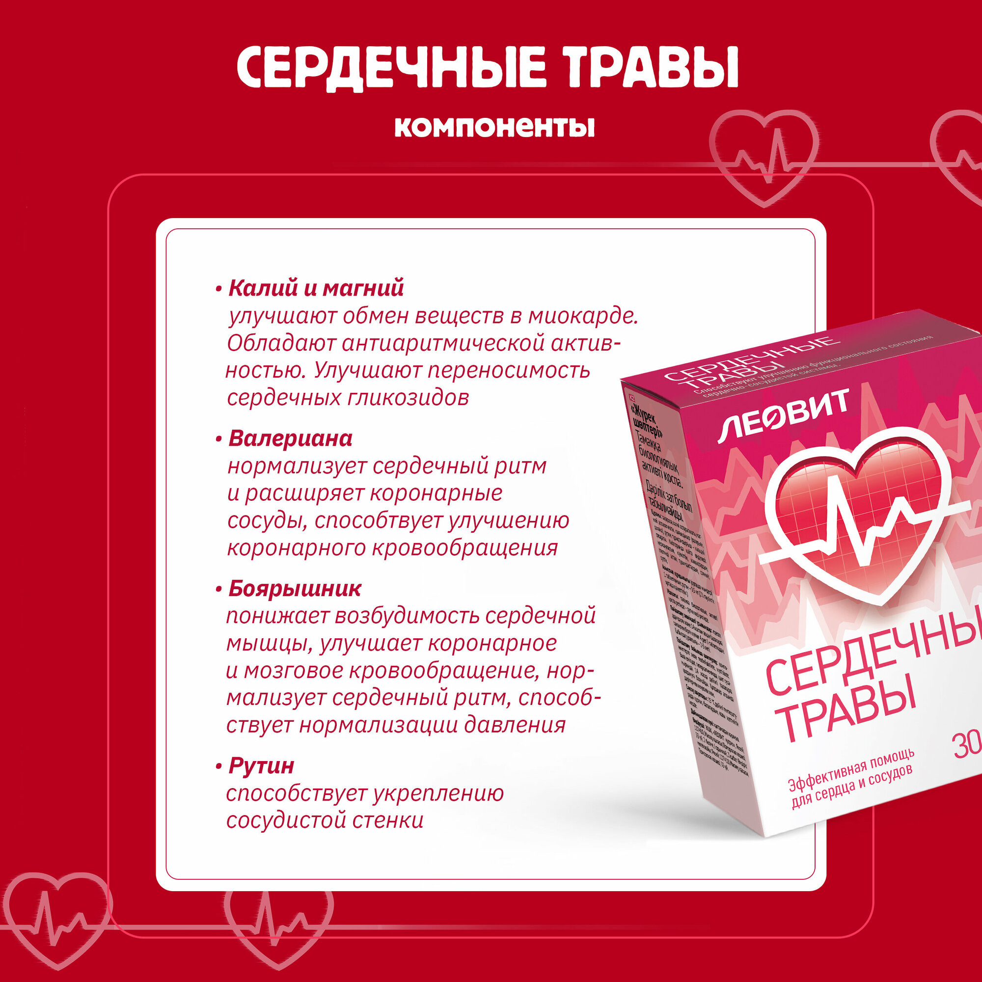 Леовит БАД Сердечные травы. 30 таблеток по 0,3 г. Упаковка 9 г.