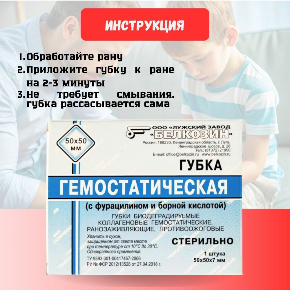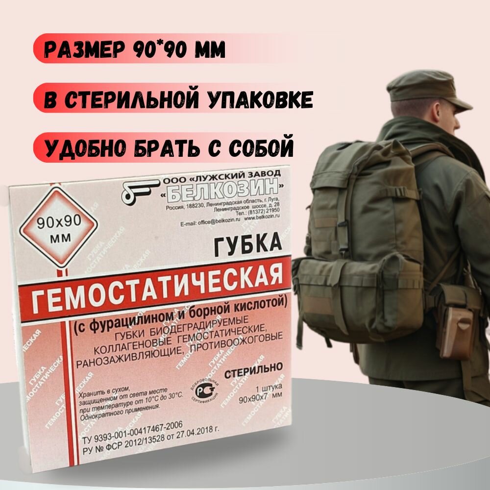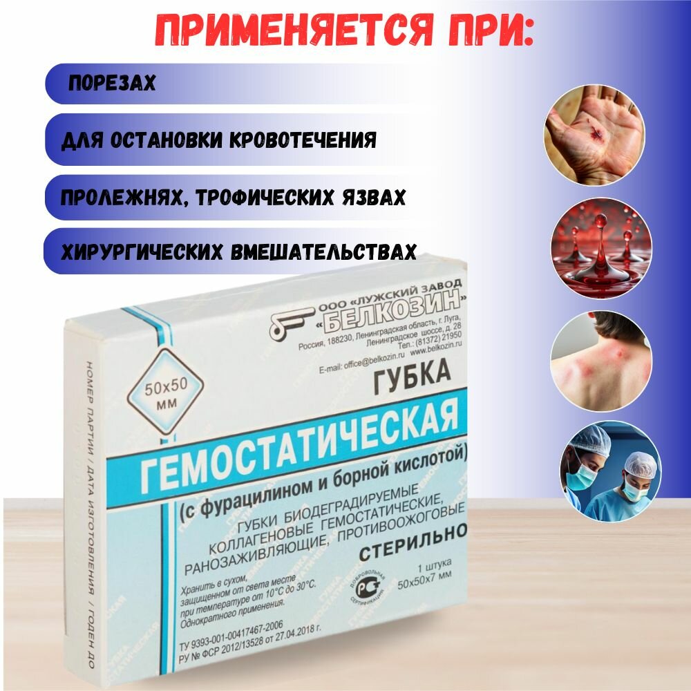 Гемостатическая губка 90х90 мм. с Фурацилином и борной кислотой - 3 шт интересное: