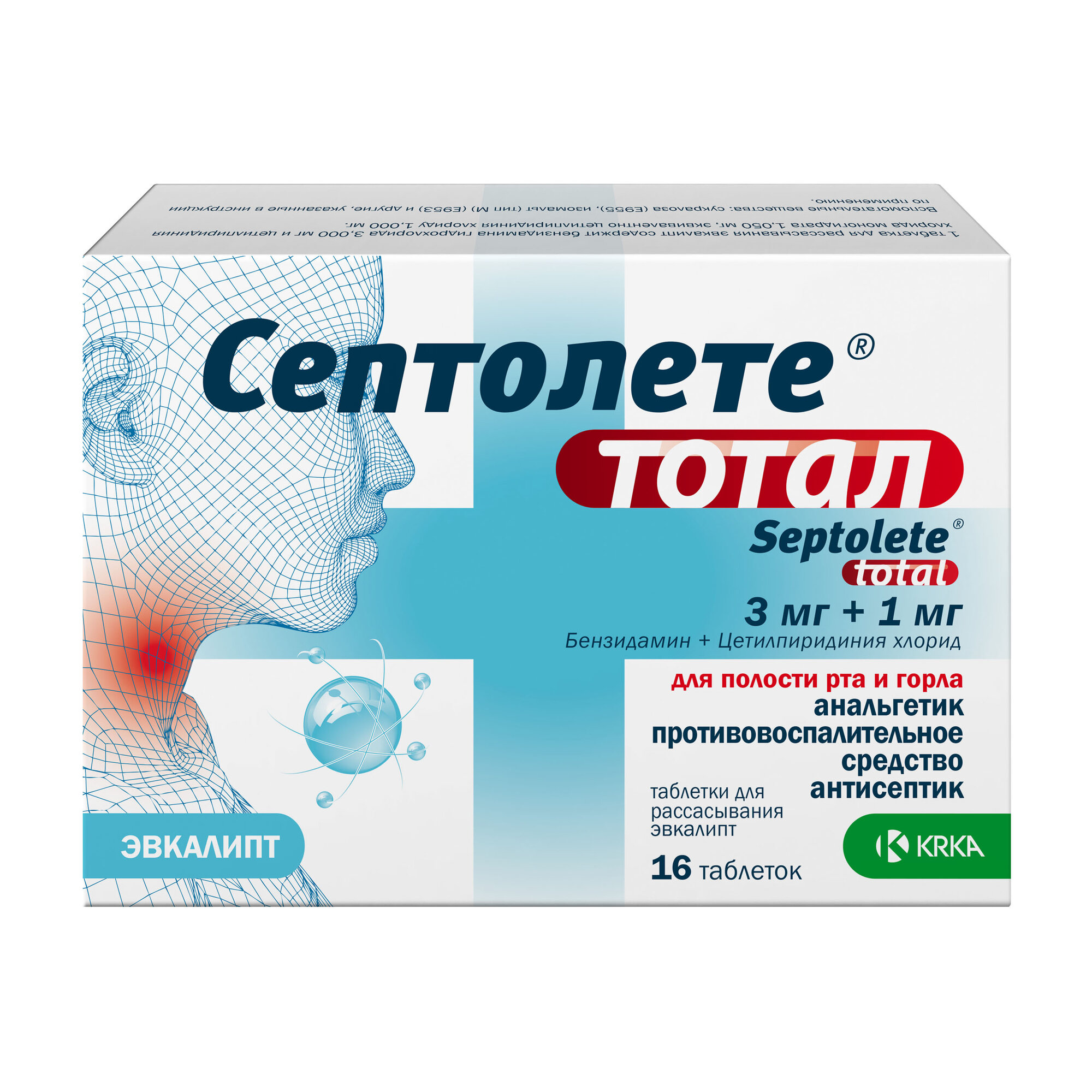 Септолете Тотал таблетки для рассасывания 3 мг+1 мг эвкалипт 16 шт