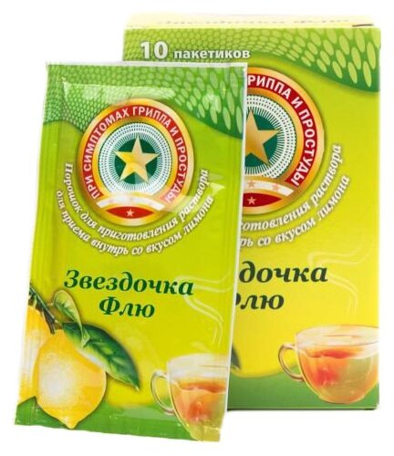 Ниже Вы можете прочитать отзывы на Звездочка Флю пор. д/приг. р-ра д/вн. приема пак., 325 мг + 20 мг + 10 мг + 50 мг, 15 г, 10 шт., лимон, ознакомится с подробными характеристиками, посмотреть интересные обзоры и фотографии на Звездочка Флю пор. д/приг. р-ра д/вн. приема пак., 325 мг + 20 мг + 10 мг + 50 мг, 15 г, 10 шт., лимон.