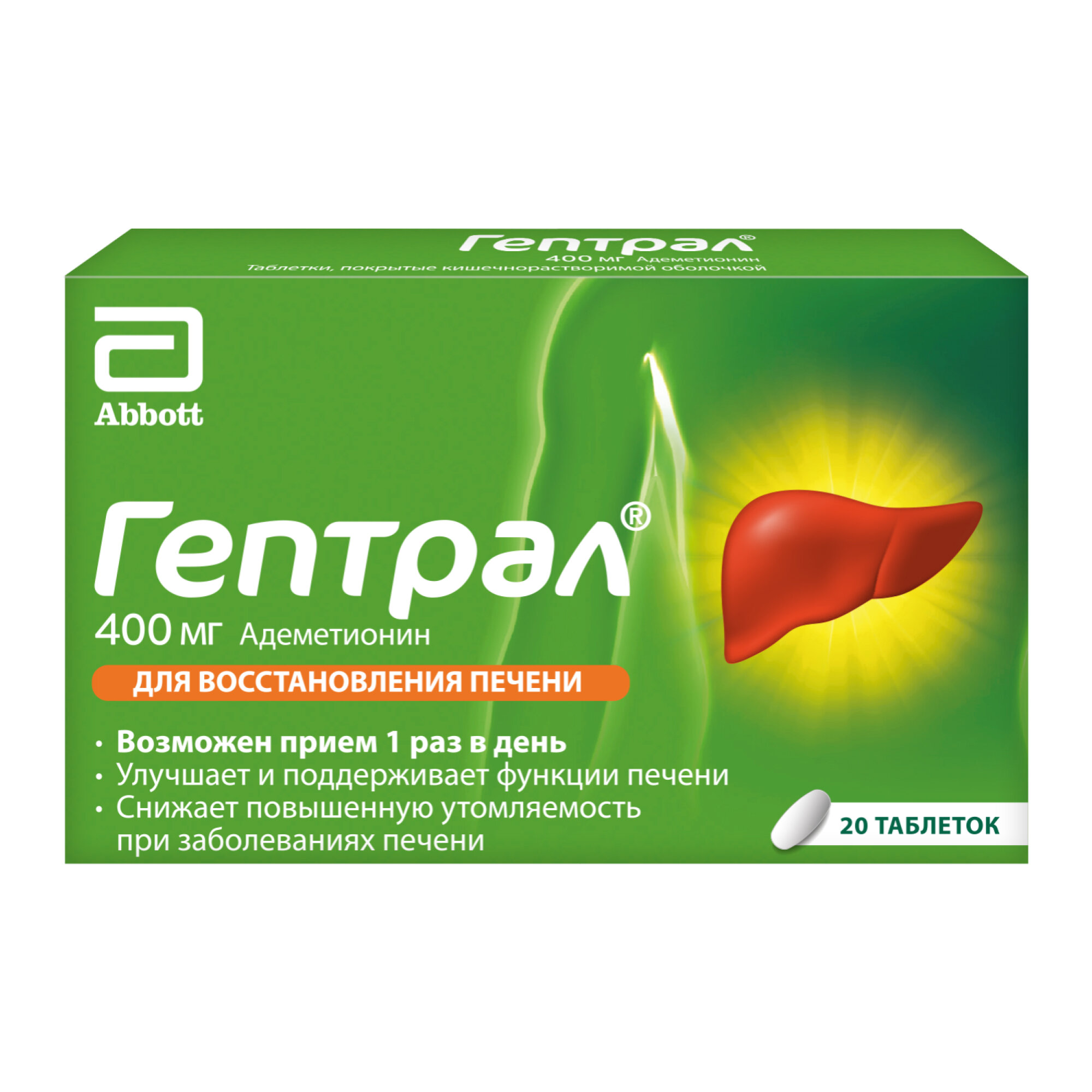 Гептрал, таблетки 400 мг, 20 шт.
